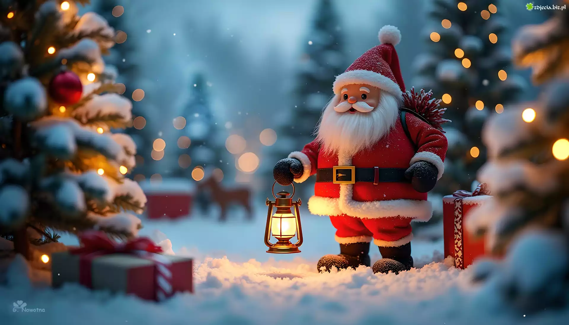 Zdjęcie, Święty, Mikołaj, Lampion, Zima, Śnieg, Grafika