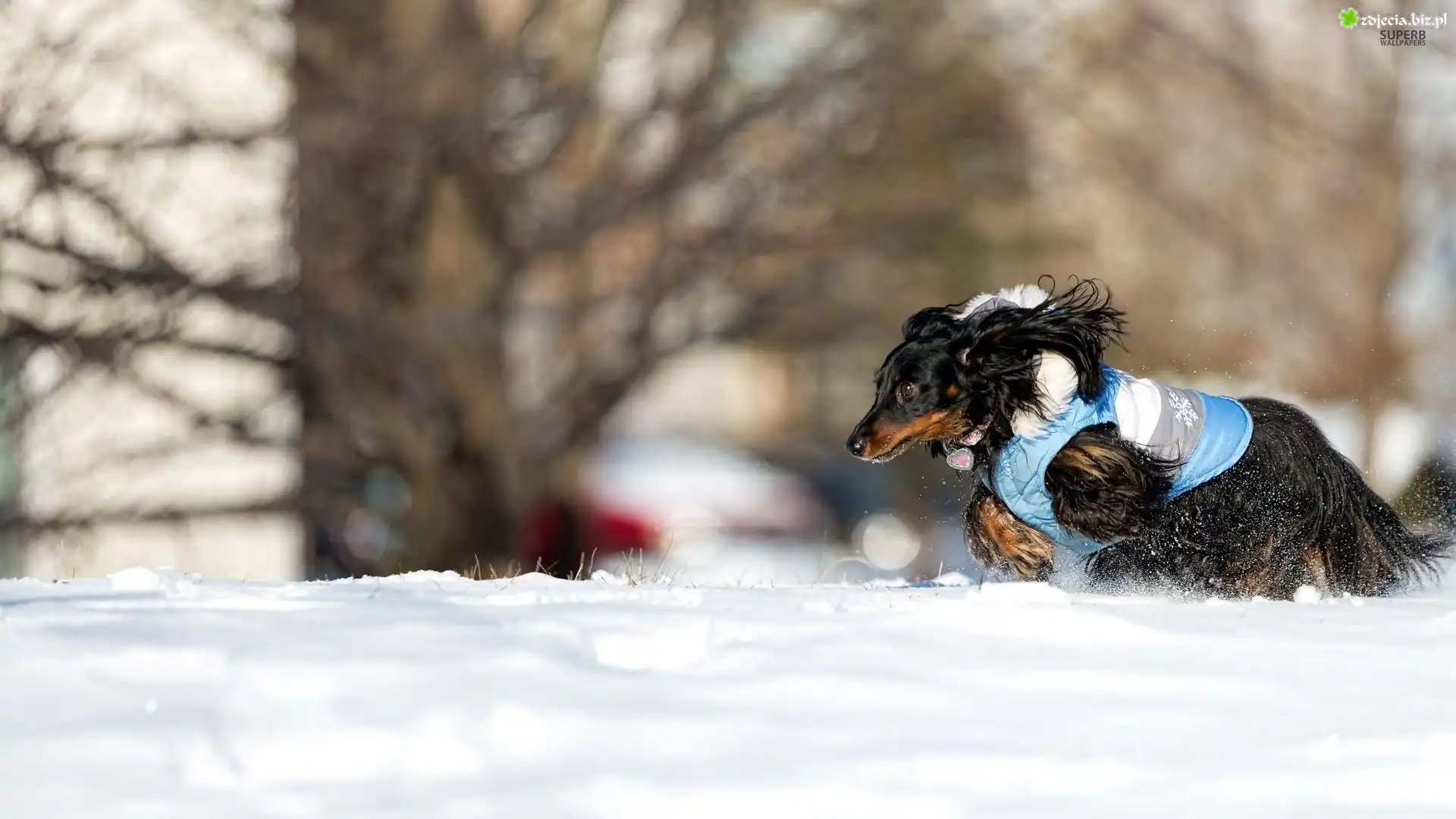 Zdjęcie, Zima, Śnieg, Jamnik, Długowsłosy