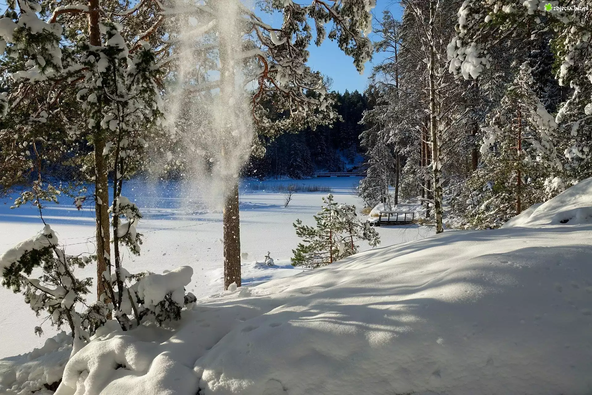 Zdjęcie Zima, Drzewa, Las, Jezioro, Śnieg