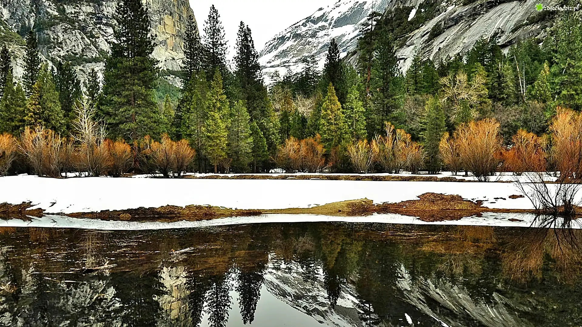 Zdjęcie, Zima, Góry, Las, Jezioro, Odbicie