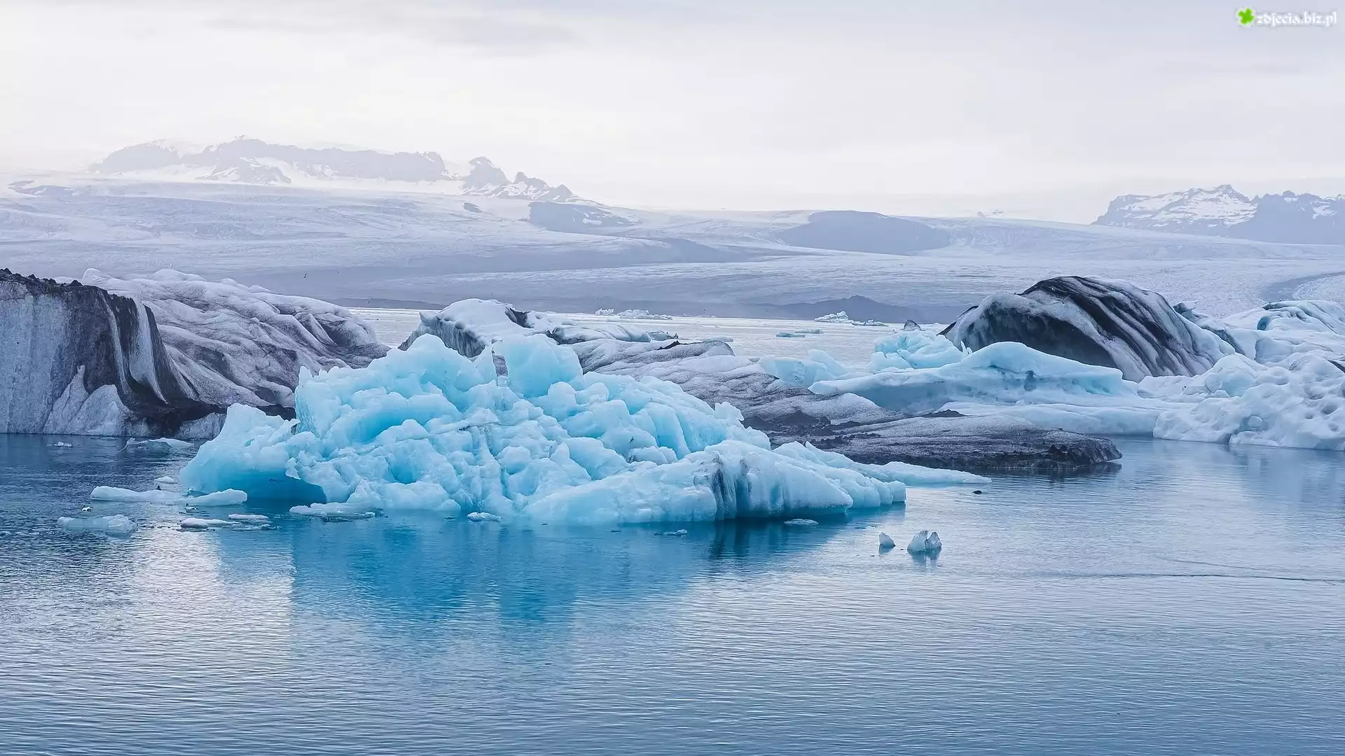 Zdjęcie Laguna, Jezioro Jokulsarlon, Islandia, Kamienie, Lód, Bryły, Zima