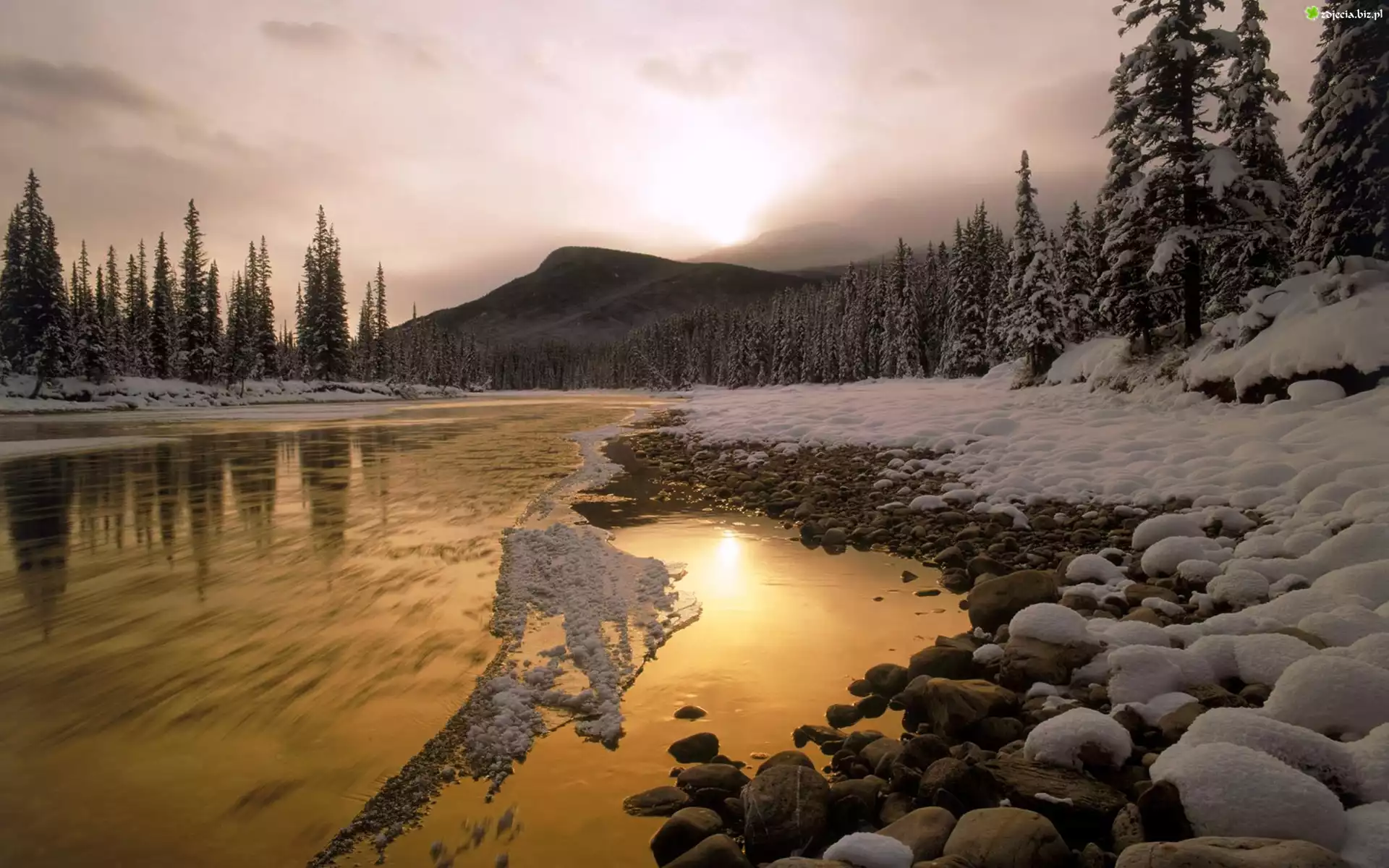 Zdjęcie Zima, Rzeka, Kamienie, Las