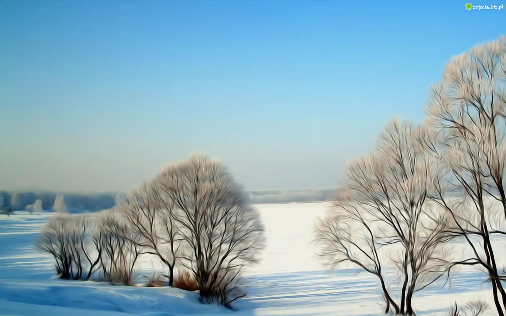 Zdjęcie Zima, Las, Grafika, Komputerowa, Fractalius