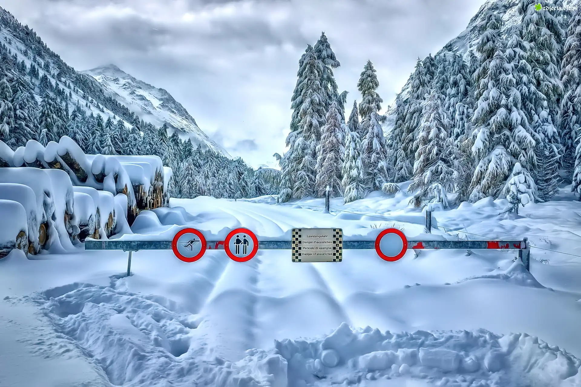 Zdjęcie Zima, Góry, Las, Szlaban
