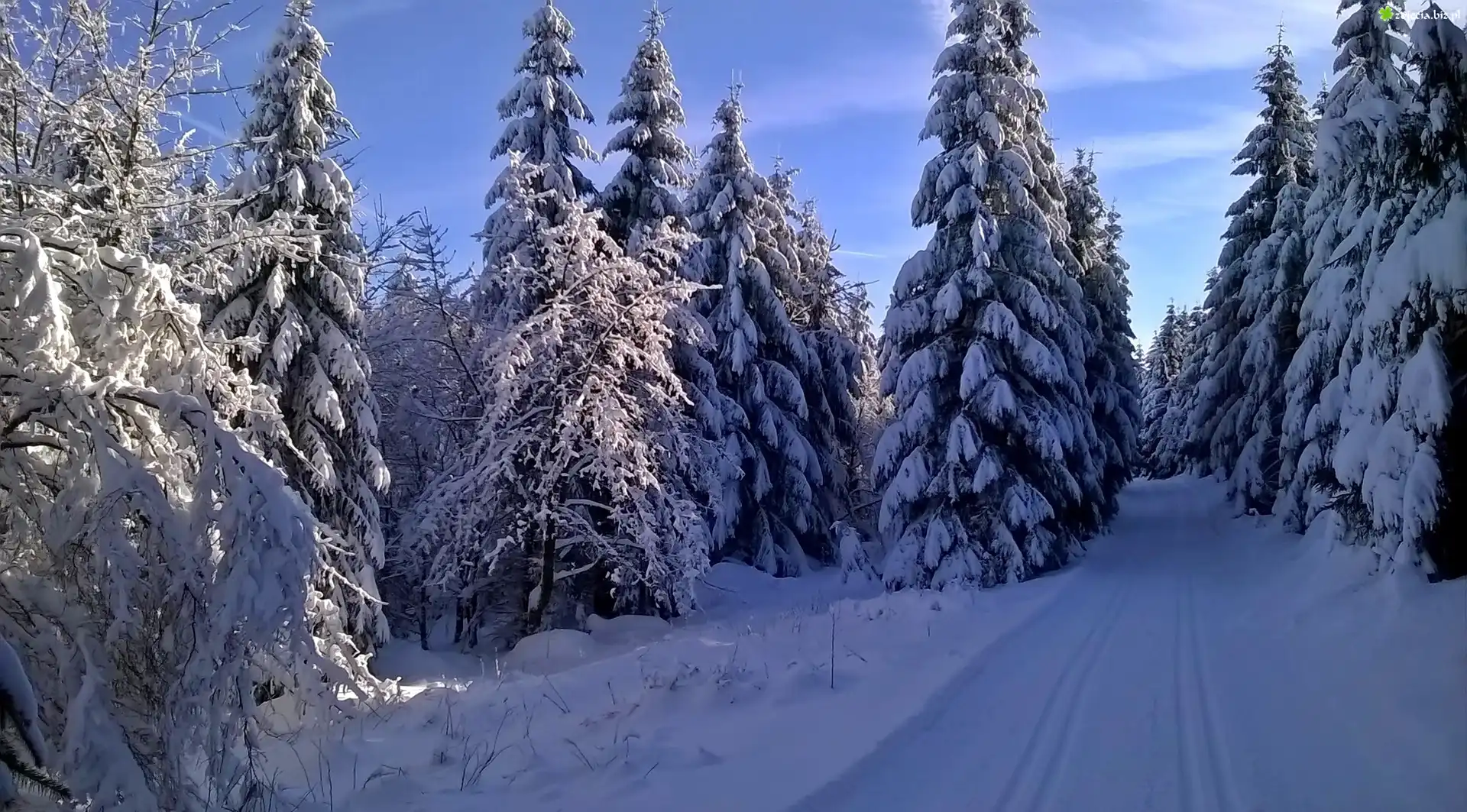 Zdjęcie Zima, Świerki, Las, Droga