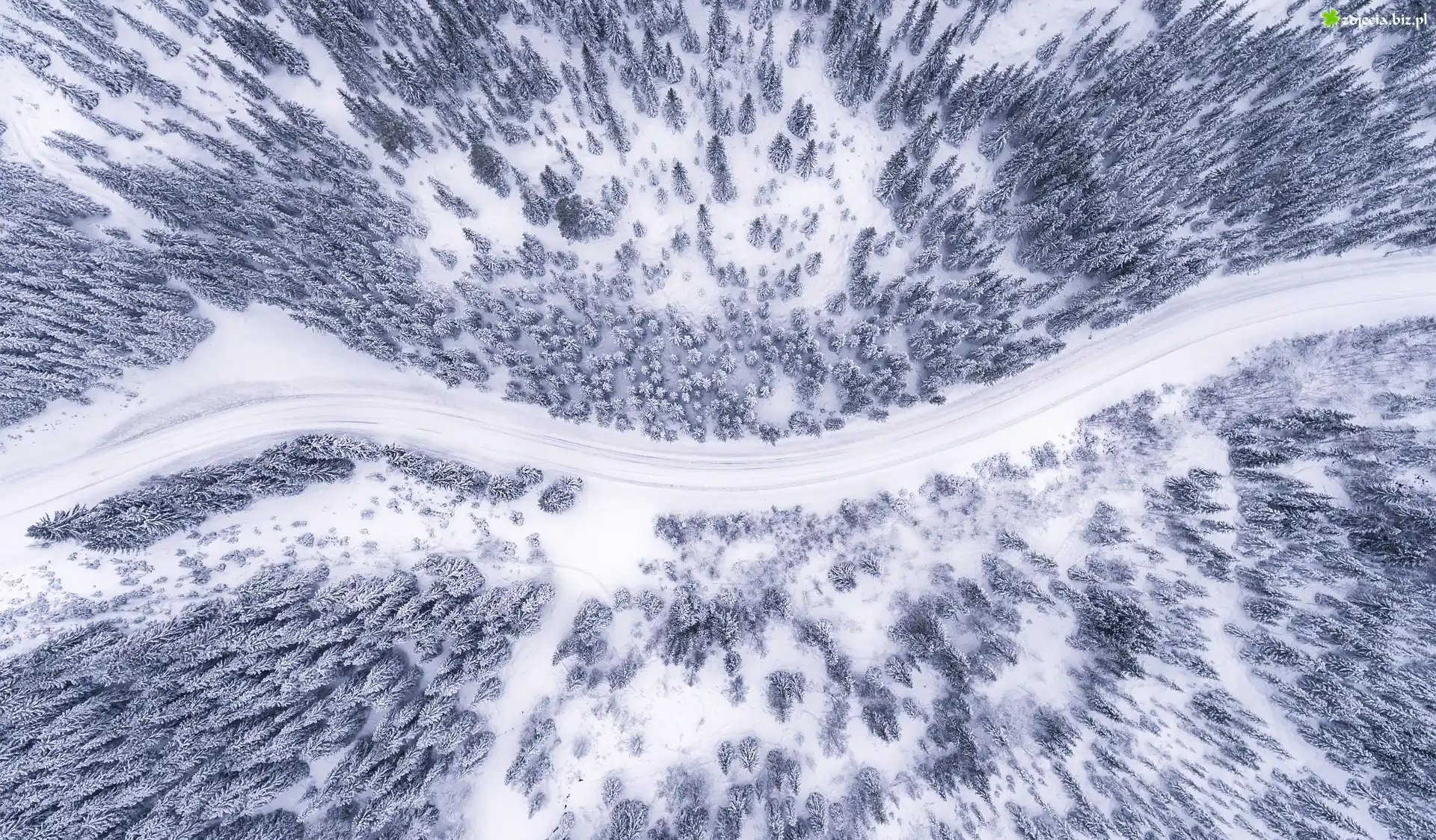 Zdjęcie, Zima, Las, Droga, Z lotu ptaka