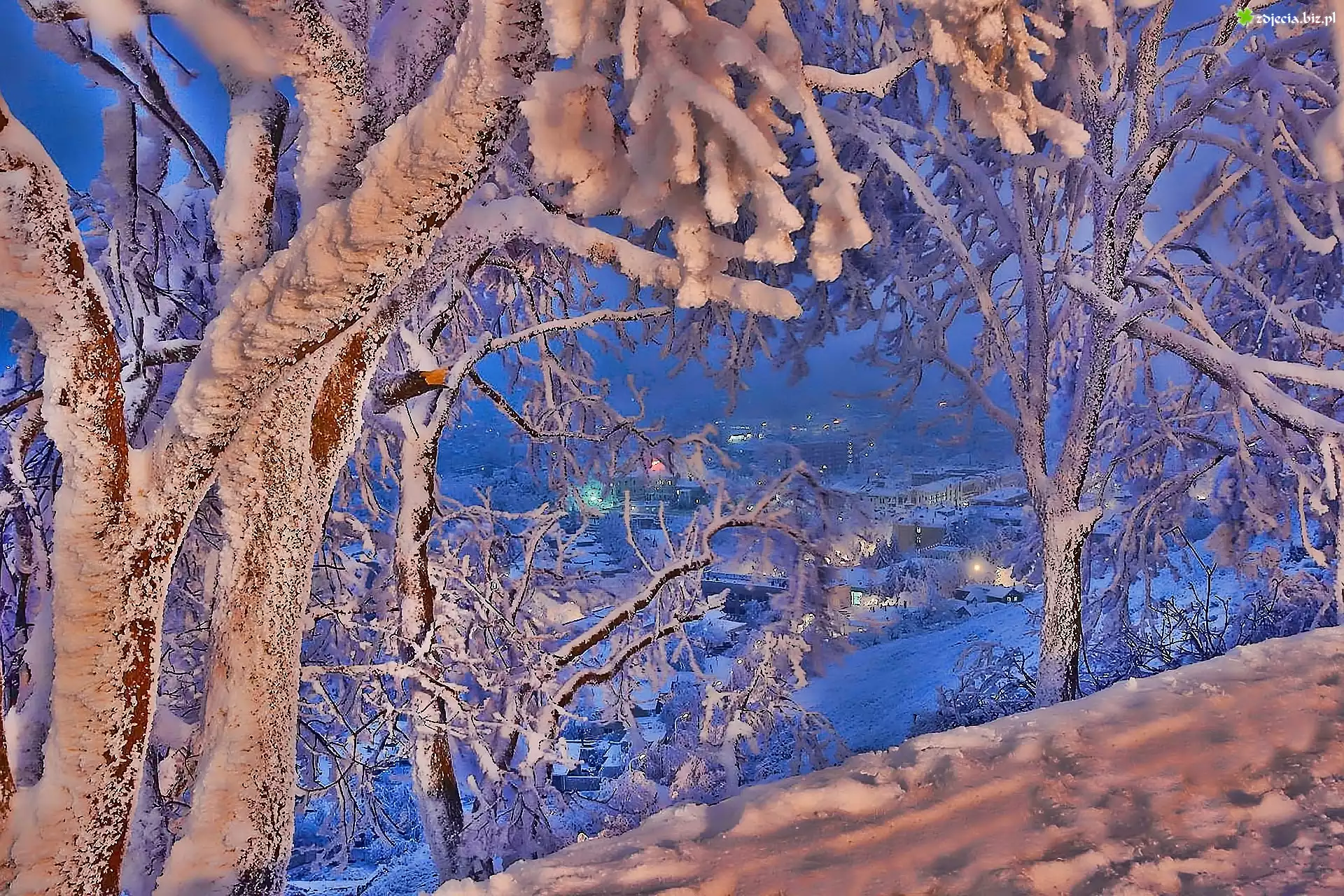 Zdjęcie Zima, Śnieg, Miasteczko, Drzewa