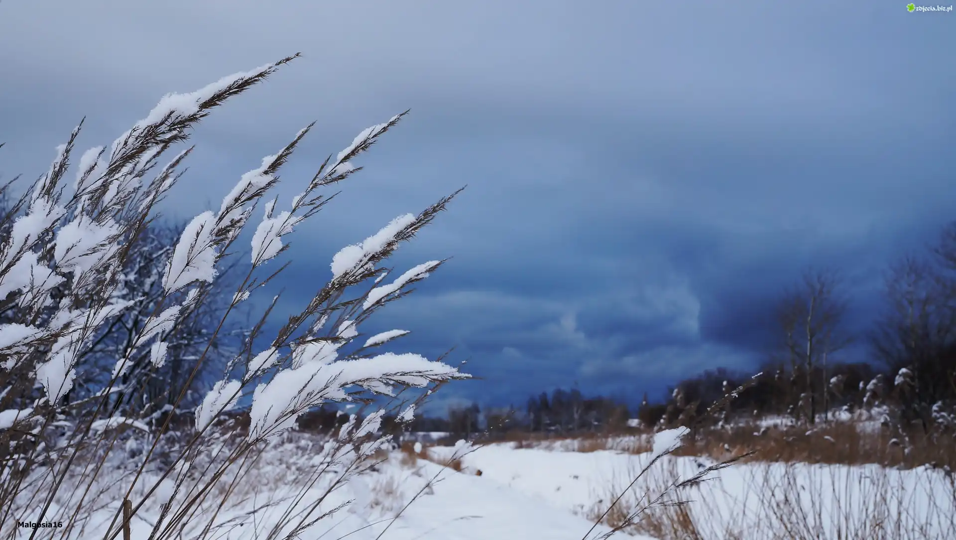 Zdjęcie Zima, Śnieg, Rośliny, Niebo, Chmury