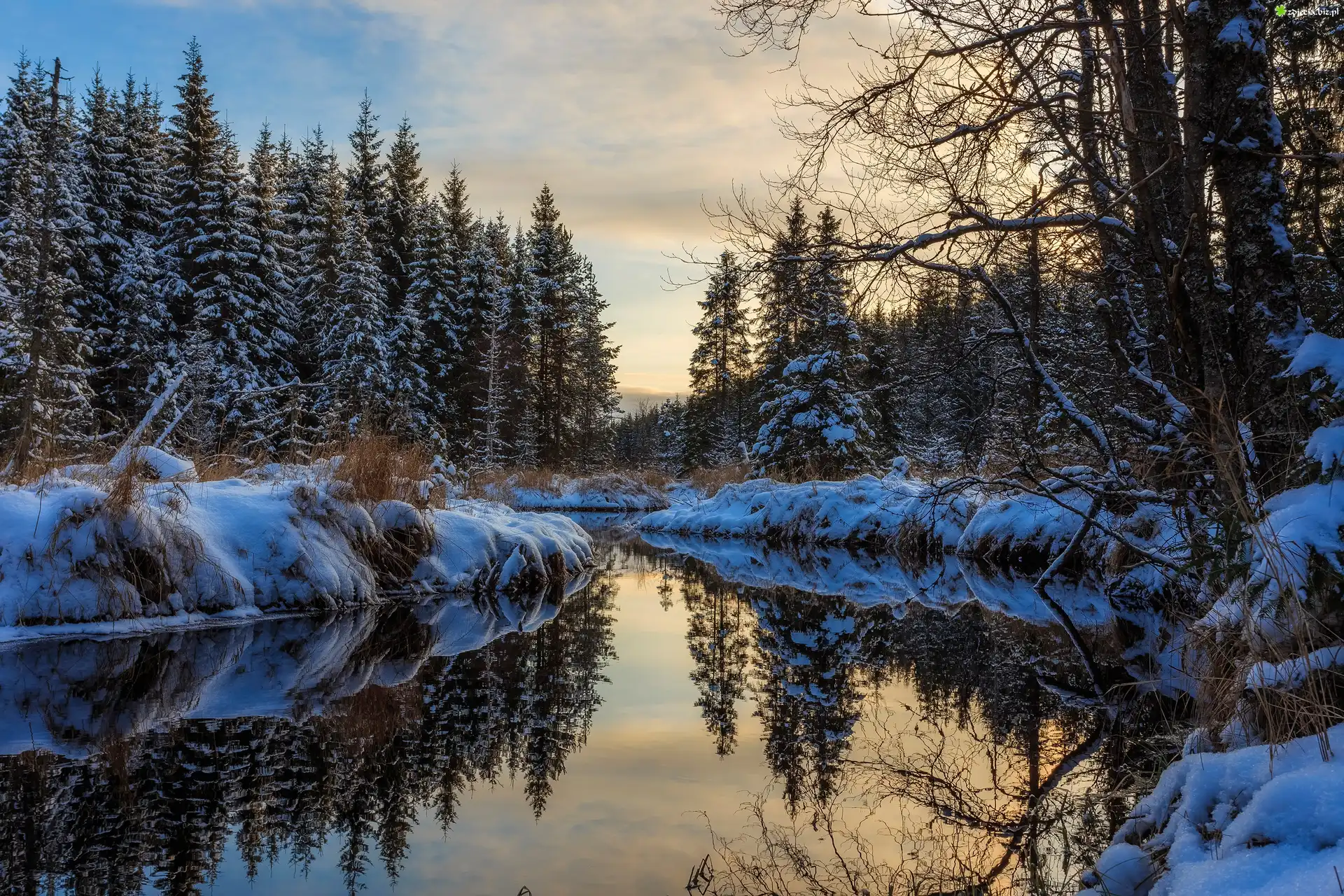 Zdjęcie, Zima, Rzeka, Las, Odbicie, Drzewa