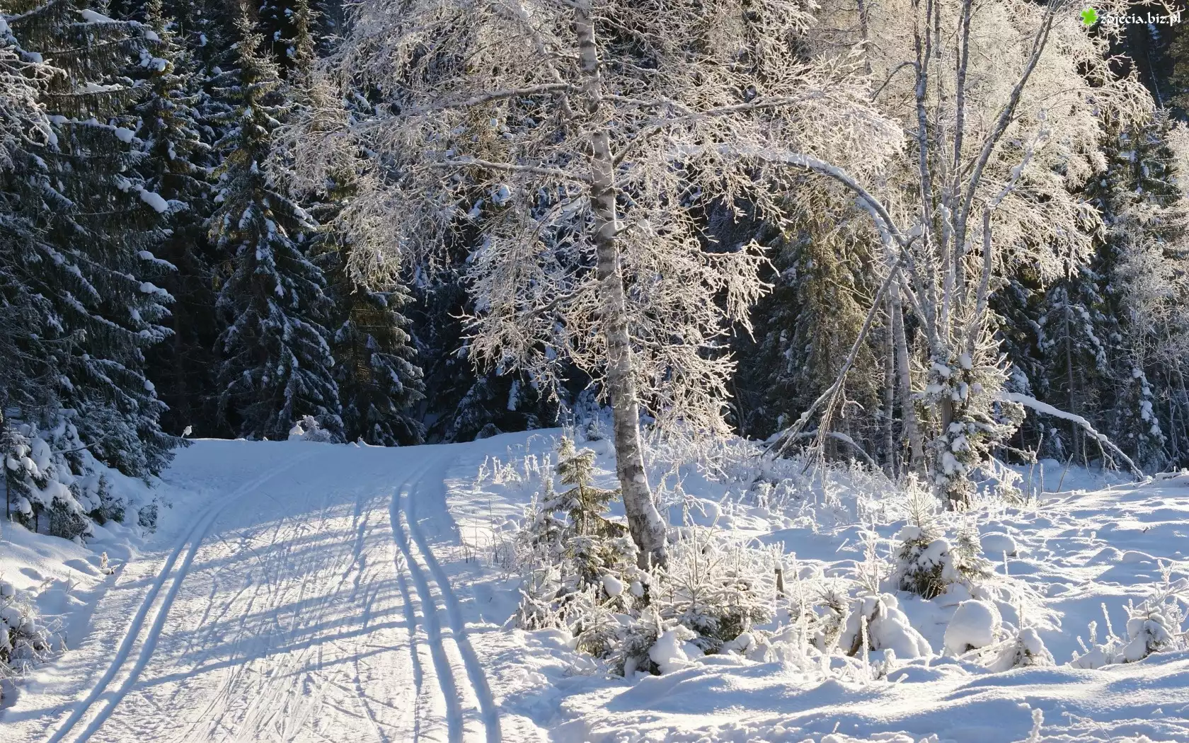 Zdjęcie Zima, Las, Droga, Ośnieżone, Drzewa