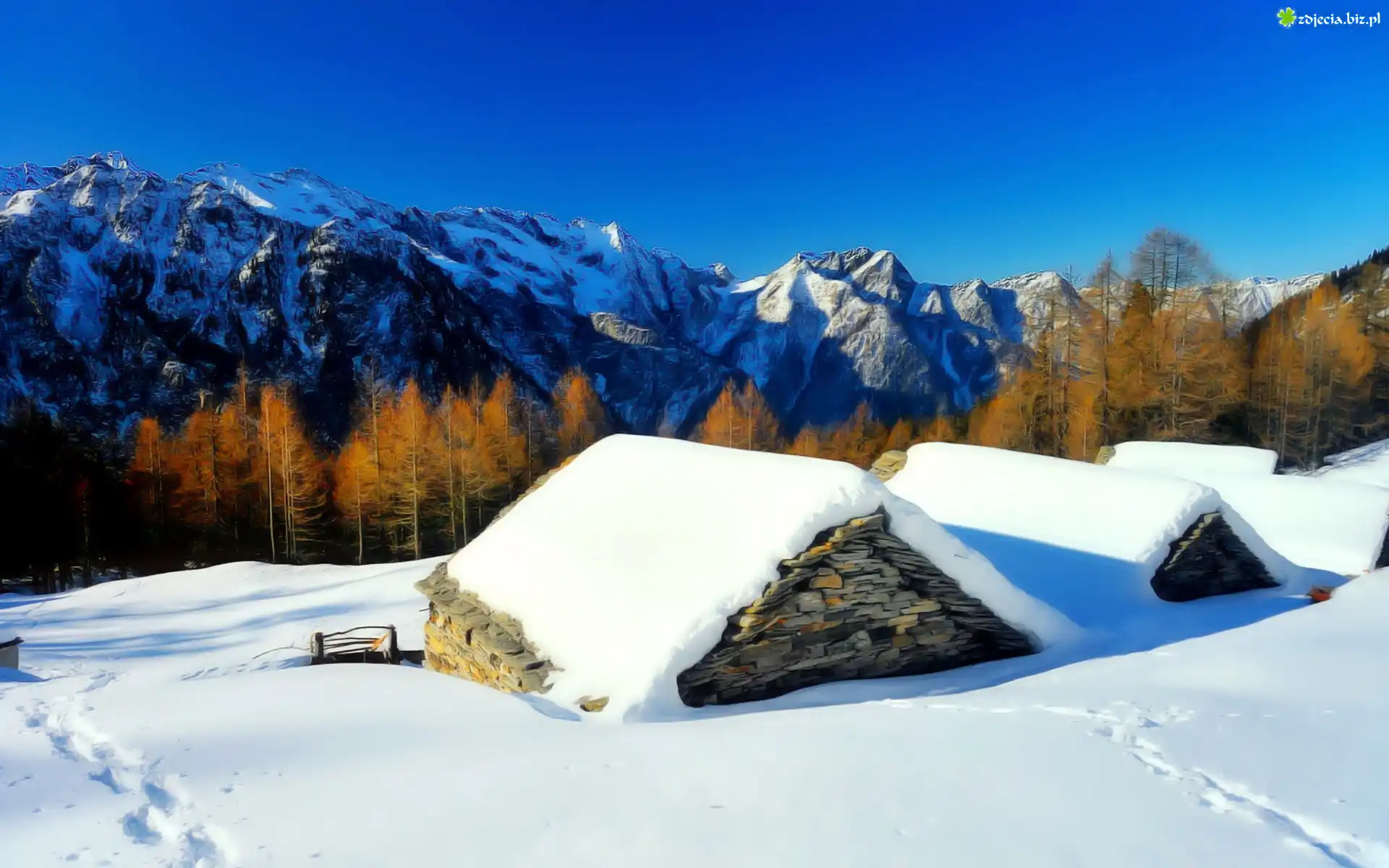 Zdjęcie Zima, Góry, Ośnieżone, Dachy