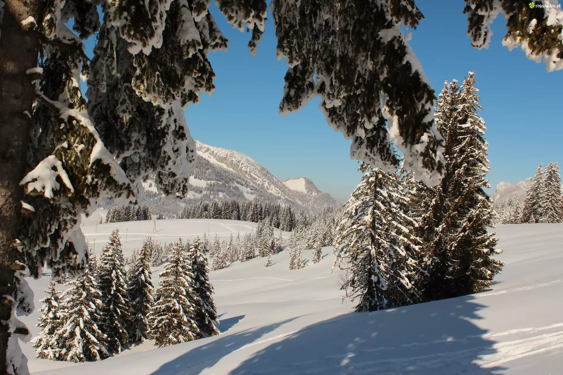 Zdjęcie Zima, Góry, Lasy, Ośnieżone, Świerki