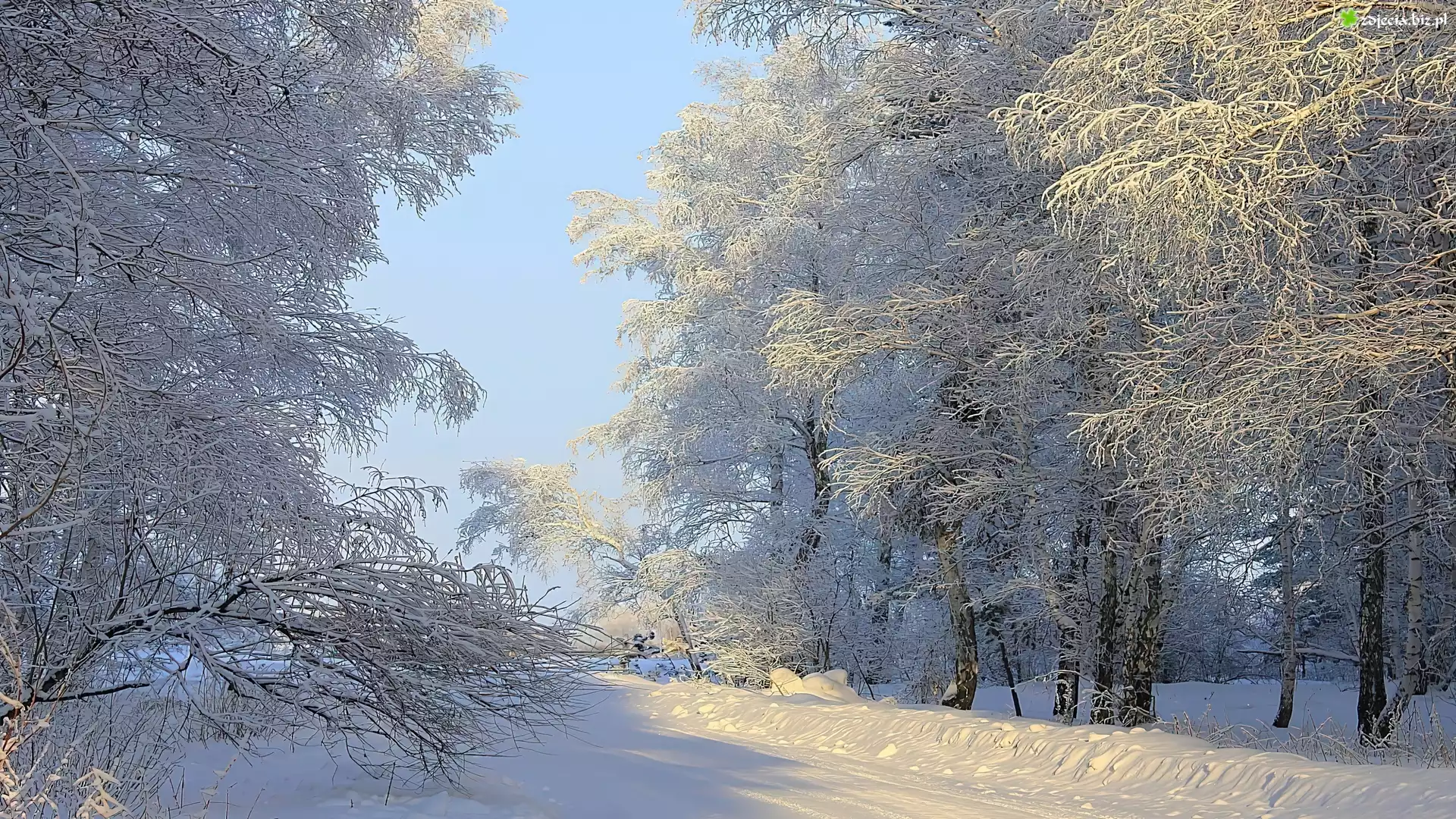 Zdjęcie Zima, Droga, Oszronione, Drzewa