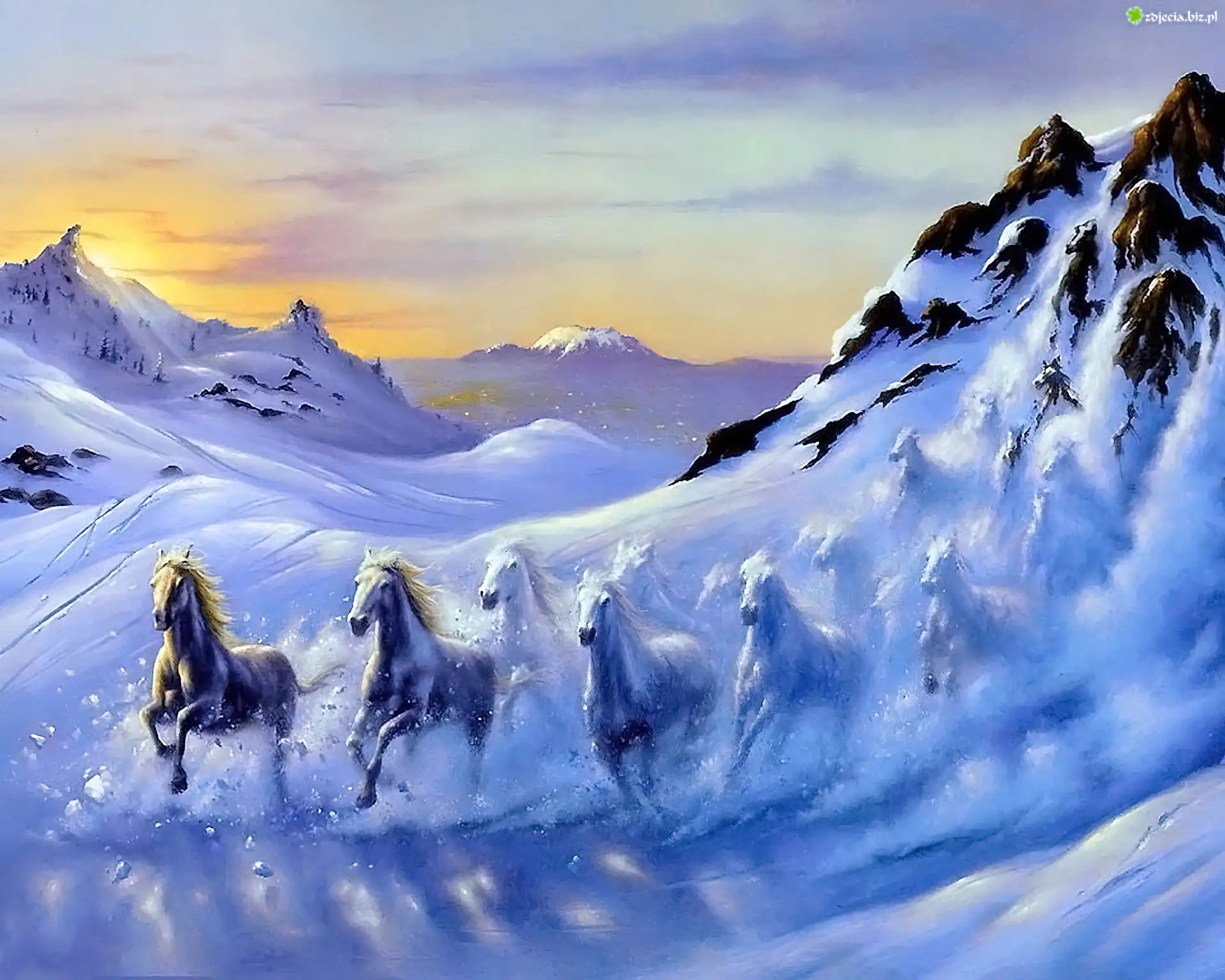Zdjęcie Zima, Śnieg, Góry, Pędzące, Konie