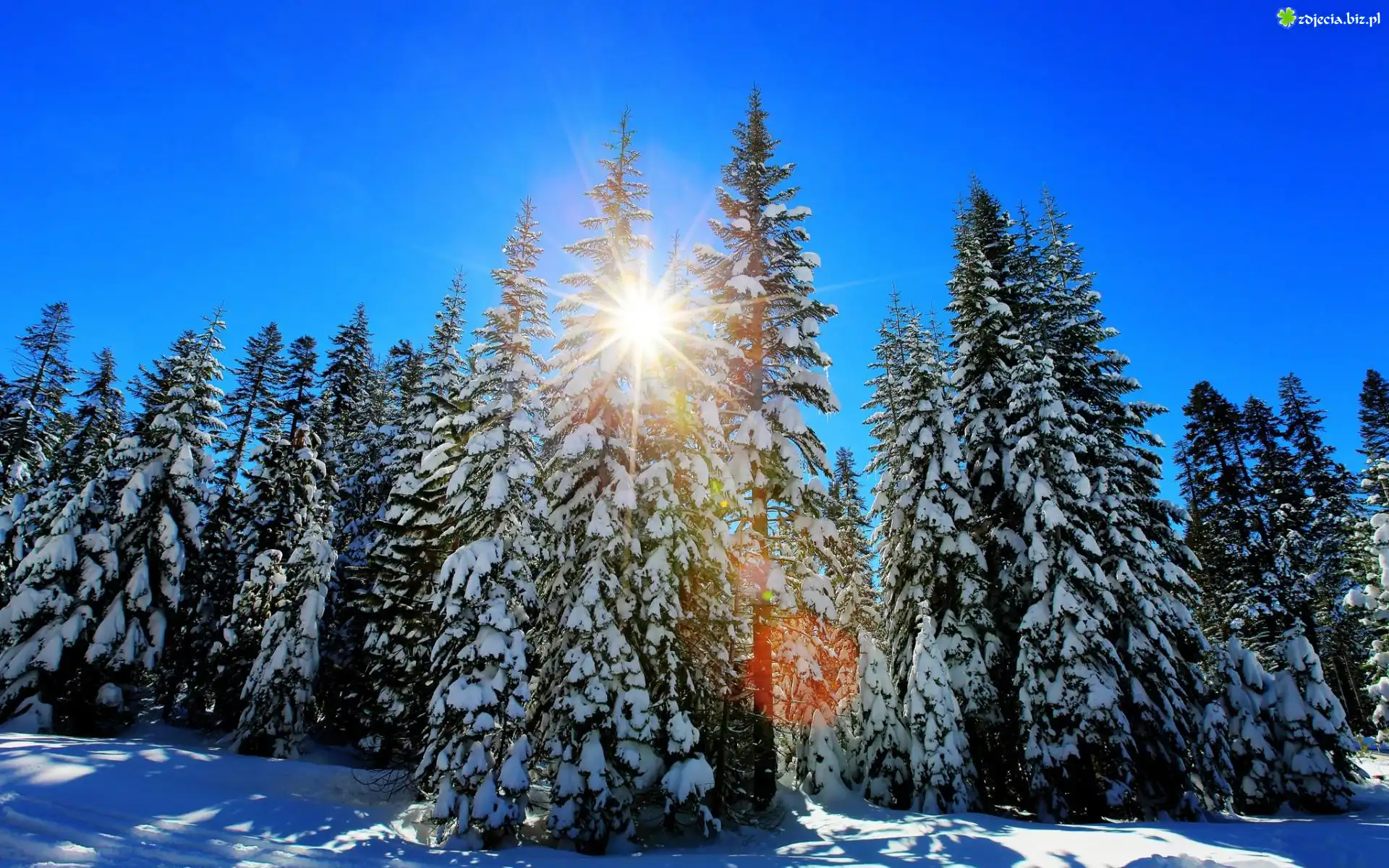 Zdjęcie, Zima, Las, Promienie, Słońca