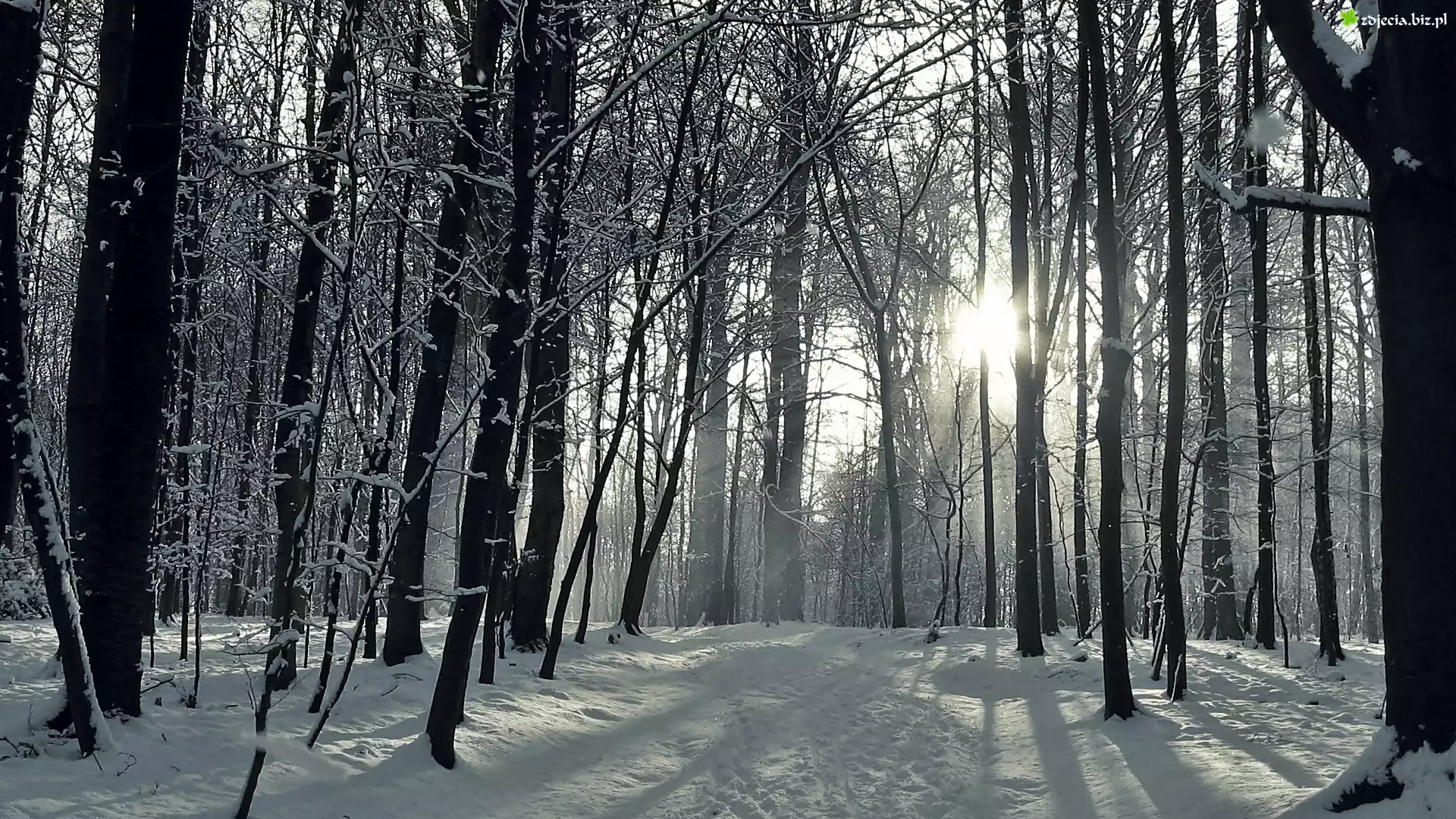 Zdjęcie Zima, Las, Droga, Przebijające, Światło