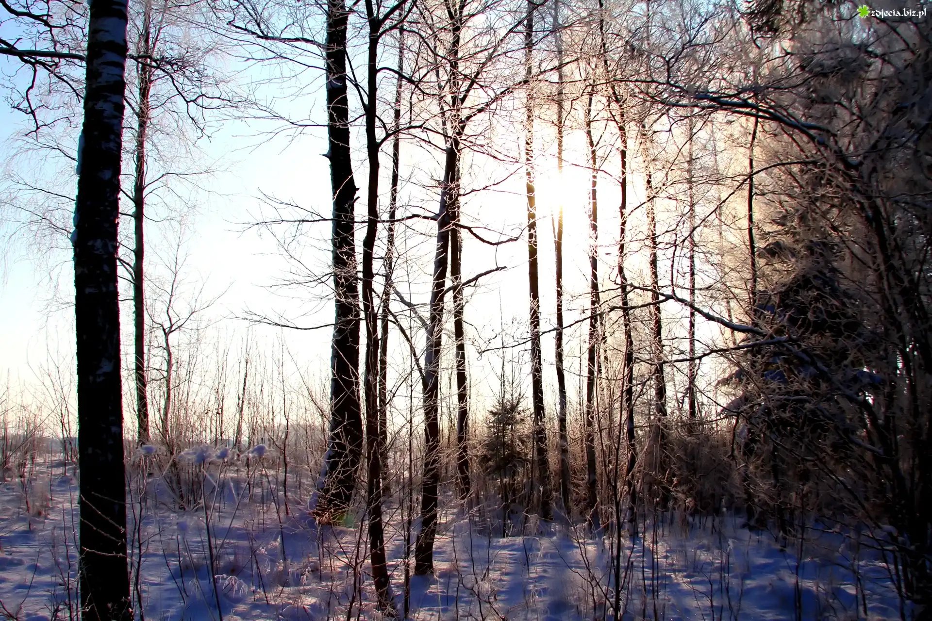 Zdjęcie Zima, Las, Przebijające, Światło