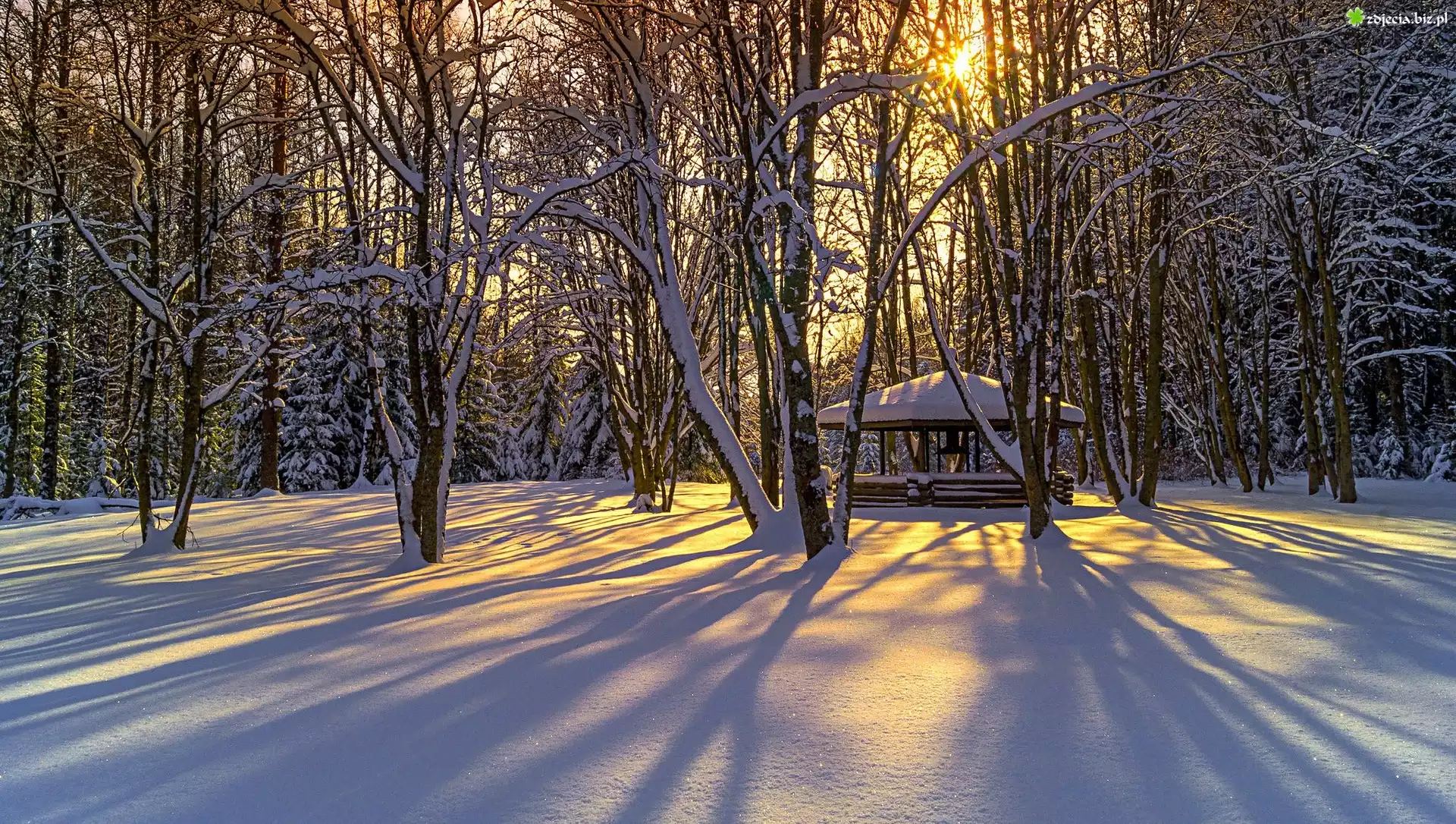 Zdjęcie Zima, Las, Śnieg, Przebijające, Światło