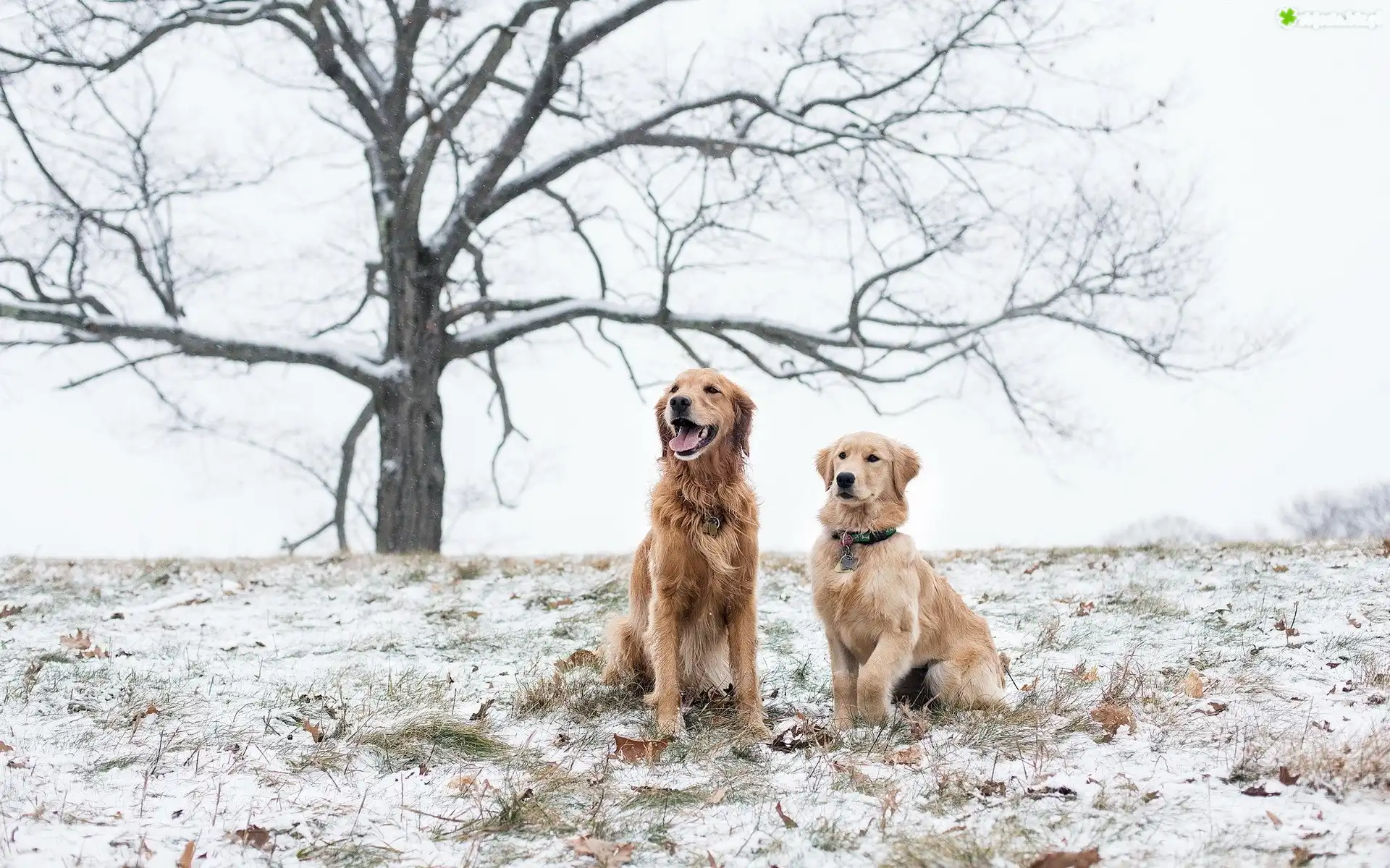 Zdjęcie Zima, Dwa, Psy, Drzewo