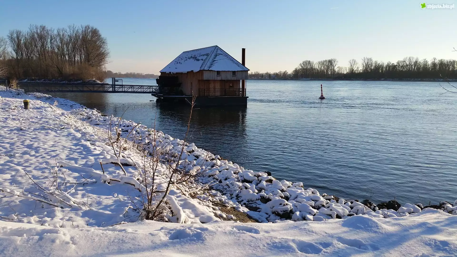 Zdjęcie Zima, Niemcy, Rzeka, Ren, Dom