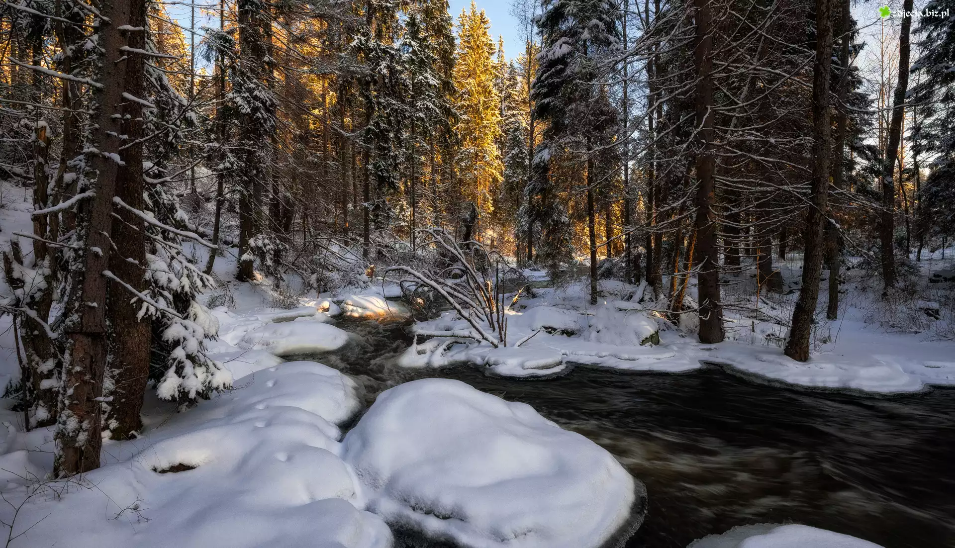 Zdjęcie Zima, Las, Rzeka, Drzewa