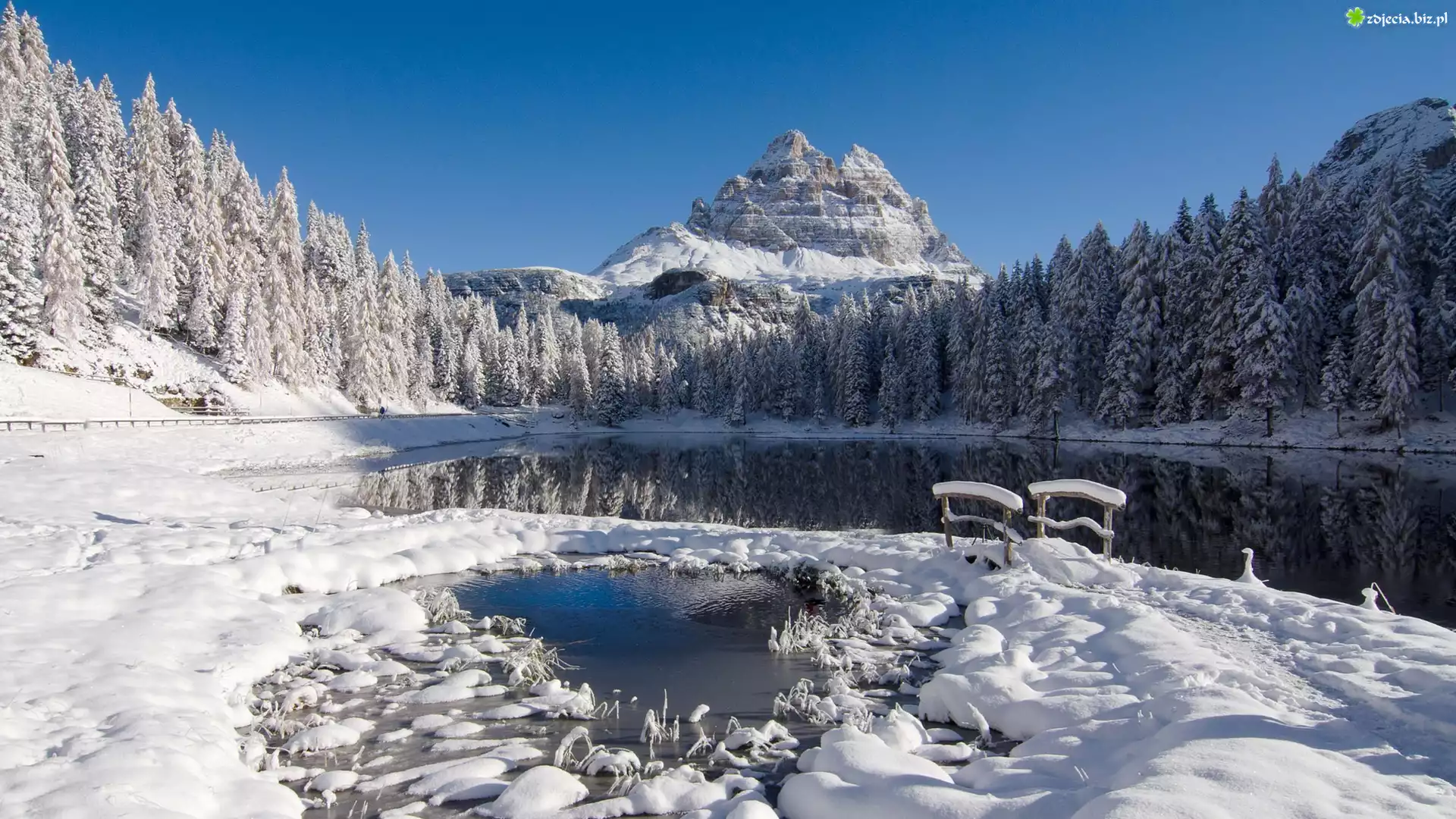 Zdjęcie Zima, Góry, Las, Rzeka, Kładka