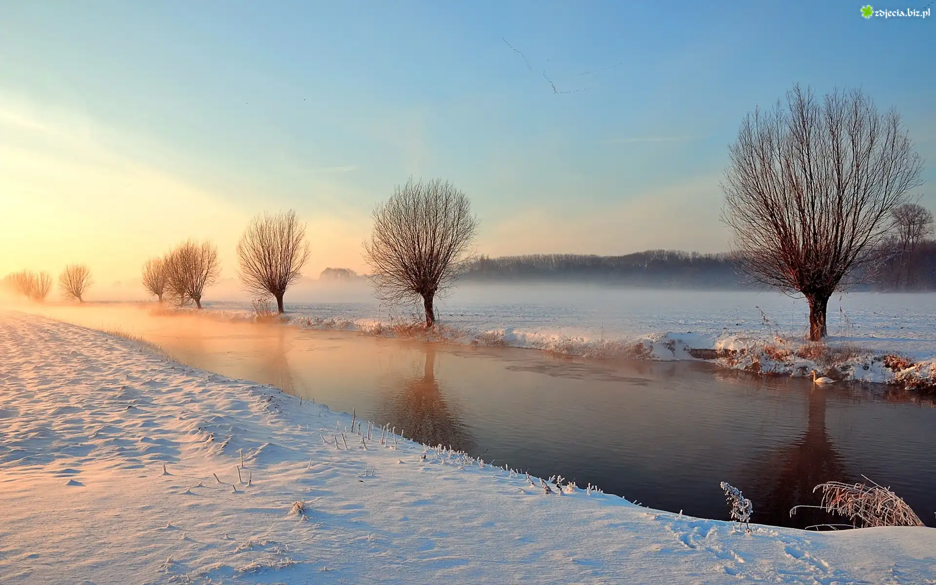 Zdjęcie Zima, Brzegi, Rzeki, Wierzby