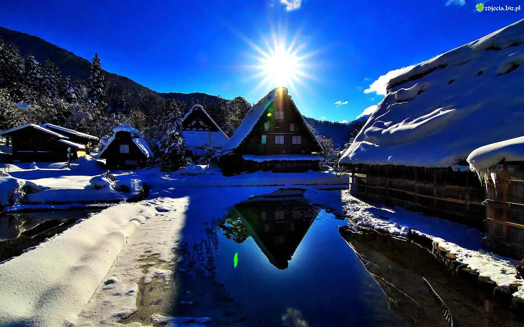 Zdjęcie Zima, Śnieg, Promienie, Słońca, Domy