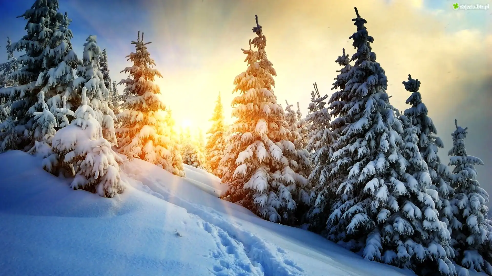 Zdjęcie, Zima, Promienie słońca, Świerk
