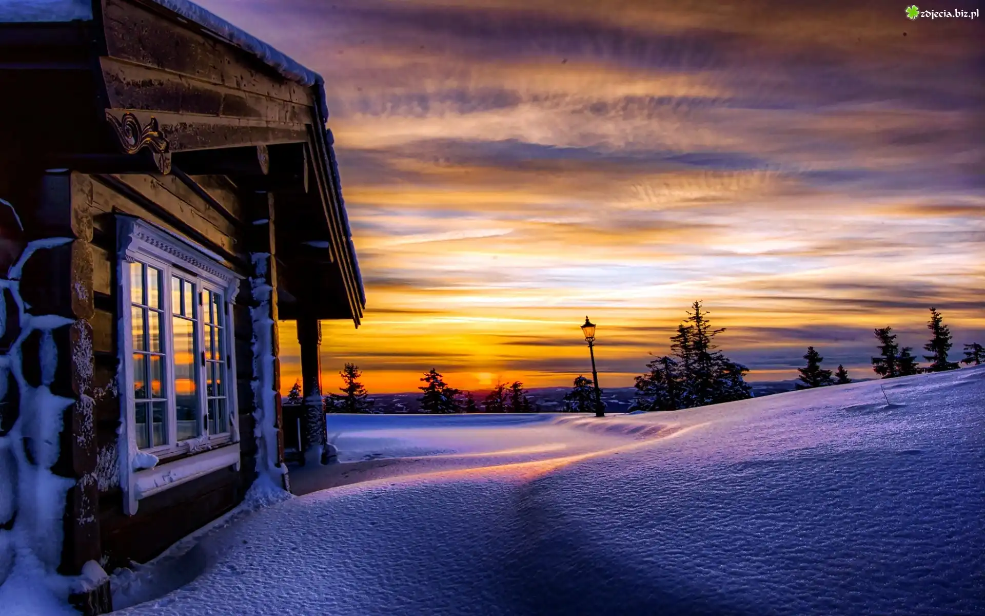 Zdjęcie Zima, Śnieg, Wschód, Słońca, Dom
