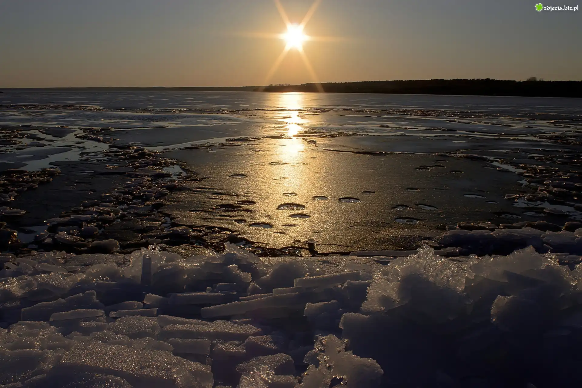 Zdjęcie Zima, Zachód, Słońca, Jezioro