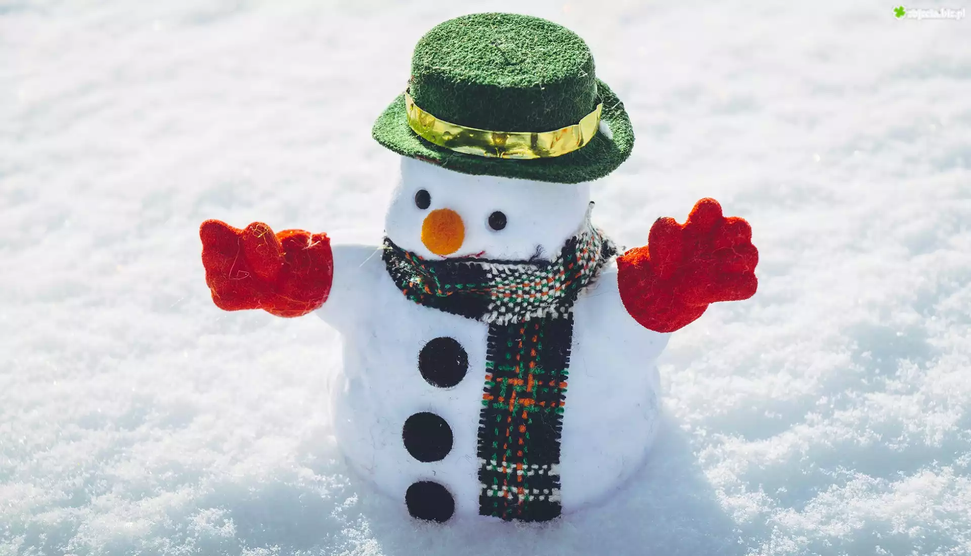 Zdjęcie Zima, Bałwanek, Kapelusz, Szalik, Rękawiczki