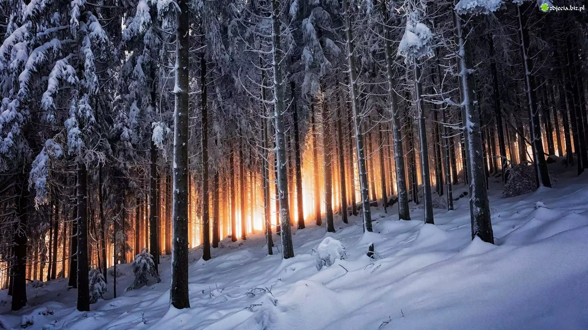 Zdjęcie Zima, Las, Przebijające, Światło, Drzewa
