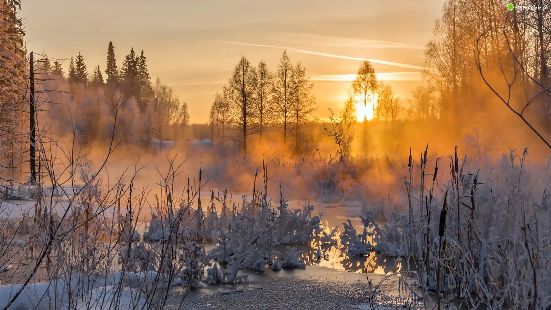 Zdjęcie Zima, Mgła, Rzeka, Wschód słońca