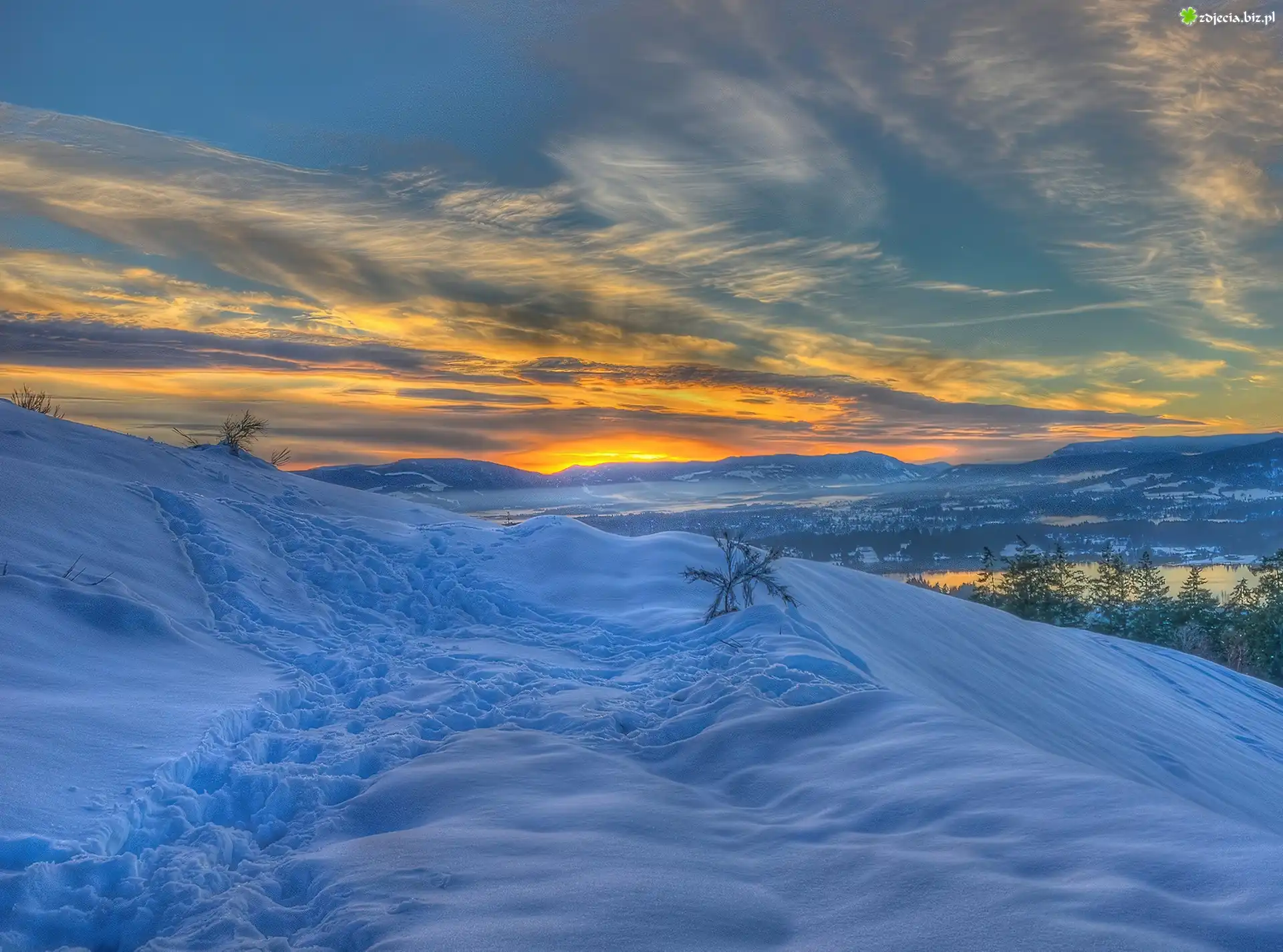 Zdjęcie Zima, Śnieg, Góry, Zachód, Słońca