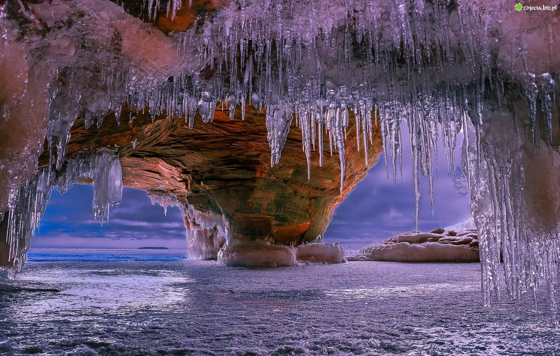 Zdjęcie Zima, Skała, Lód, Zamarznięte, Jezioro