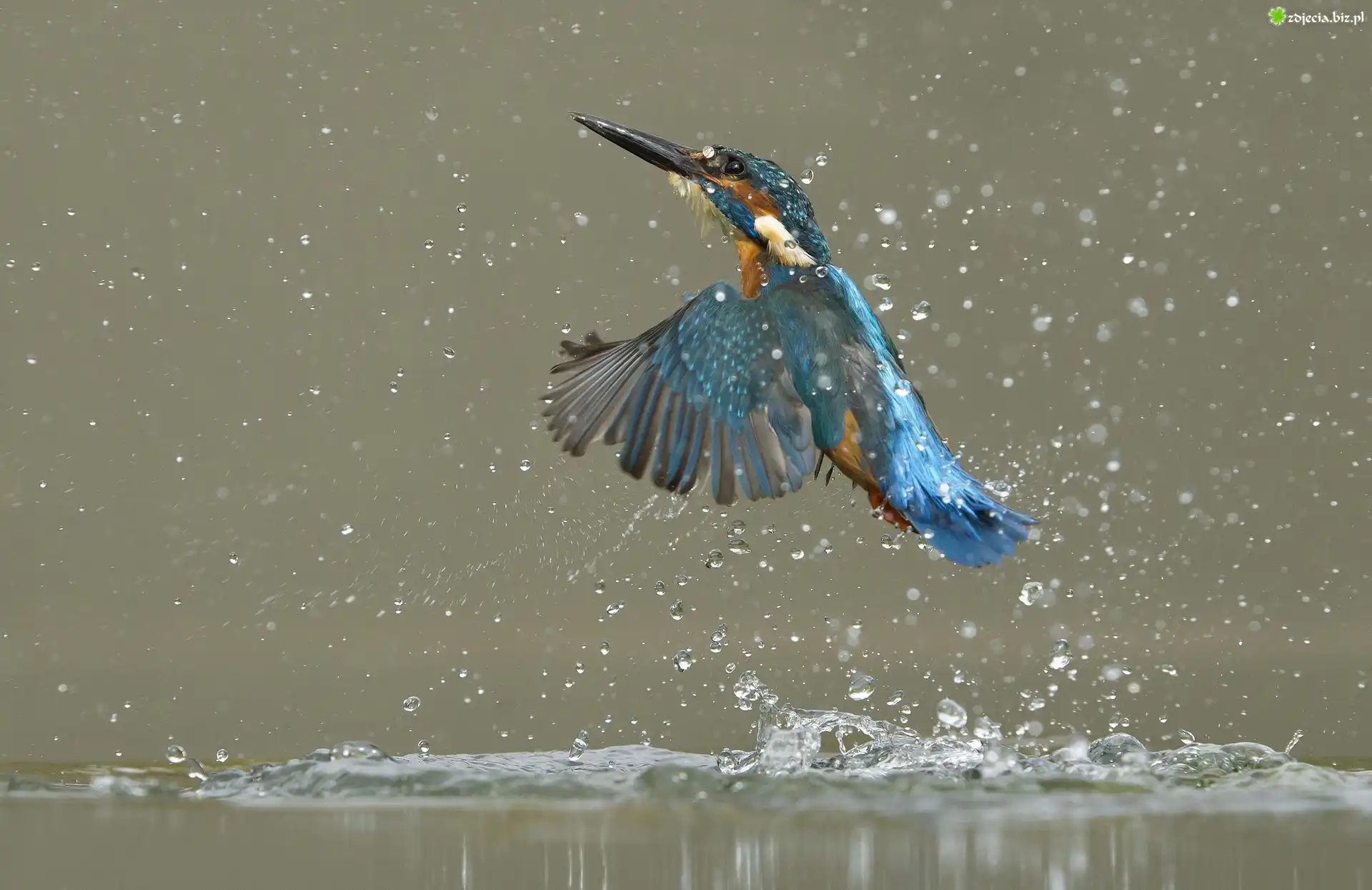 Zdjęcie Zimorodek, Lot, Woda, Krople, Rozpryski