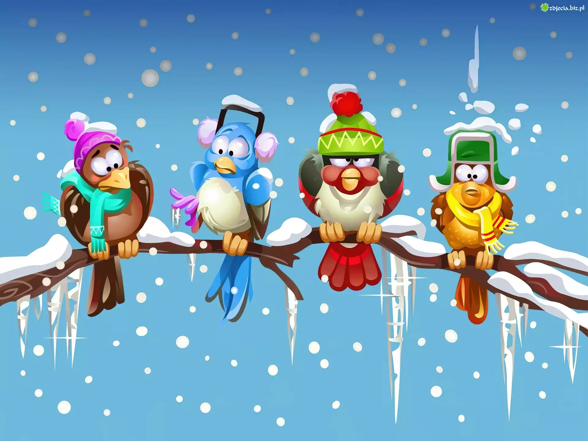 Zdjęcie Kolorowe, Zimowe, Ptaszki