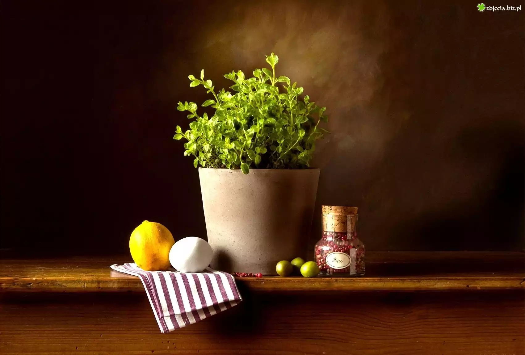 Zdjęcie, Zioła, Doniczka, Pieprz, Cytryna, Czosnek