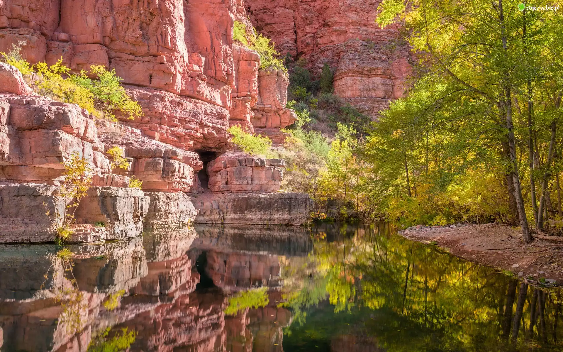 Zdjęcie Góry, Skały, Drzewa, Rzeka, Kanion Sycamore, Arizona, Stany Zjednoczone