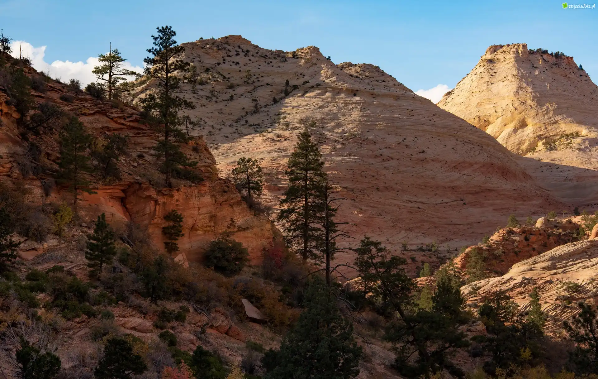 Zdjęcie Park Narodowy Zion, Drzewa, Góry, Skały, Stan Utah, Stany Zjednoczone