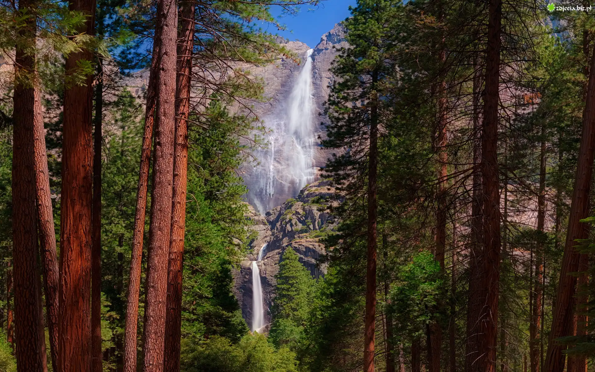 Zdjęcie Park Narodowy Yosemite, Wodospad Upper Yosemite, Drzewa, Kalifornia, Stany Zjednoczone