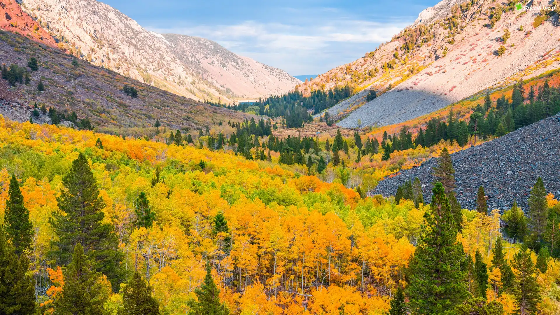Zdjęcie Góry, Drzewa, Lasy, Jesień, Wąwóz, Lundy Canyon, Kalifornia, Stany Zjednoczone