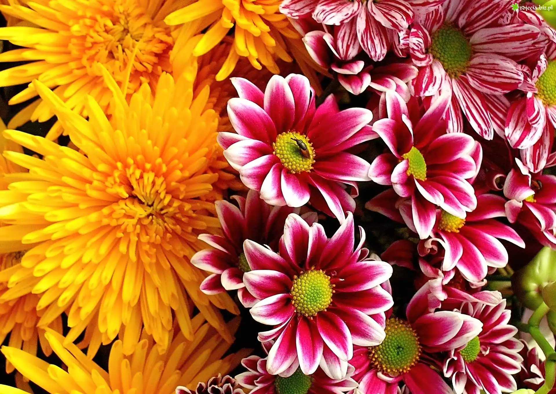 Zdjęcie Żółta, Chryzantema, Złocień, Różowy