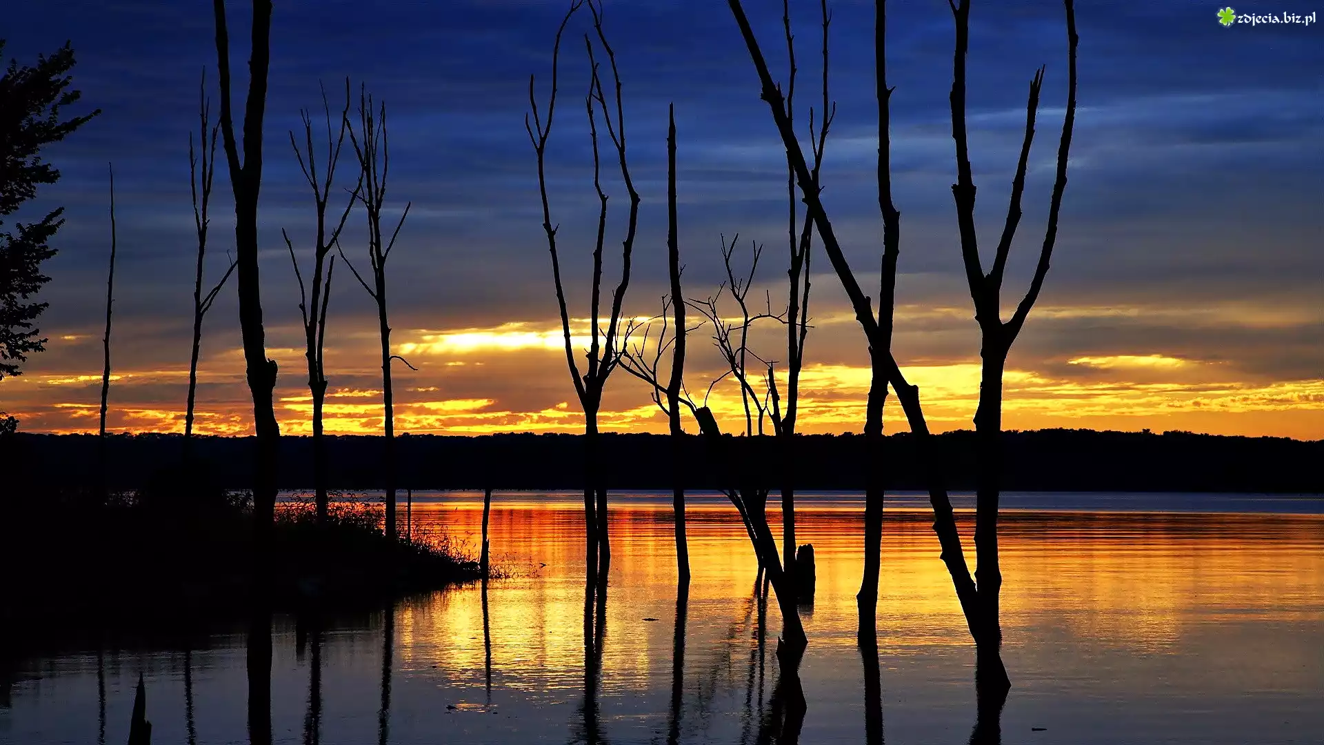 Zdjęcie Złoty, Zachód, Słońca, Jezioro