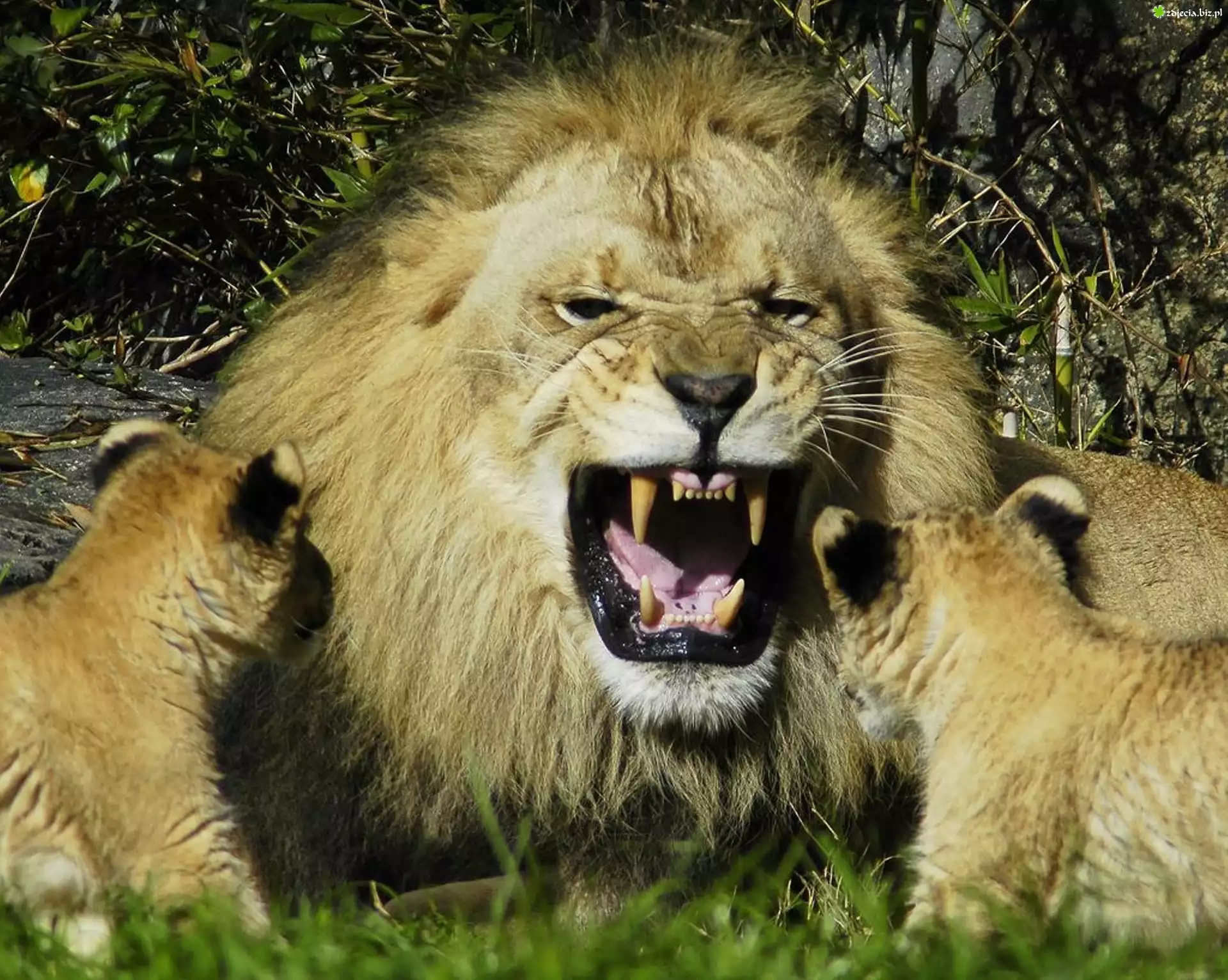 Zdjęcie Zły, Lew, Lwiątko, Trawa