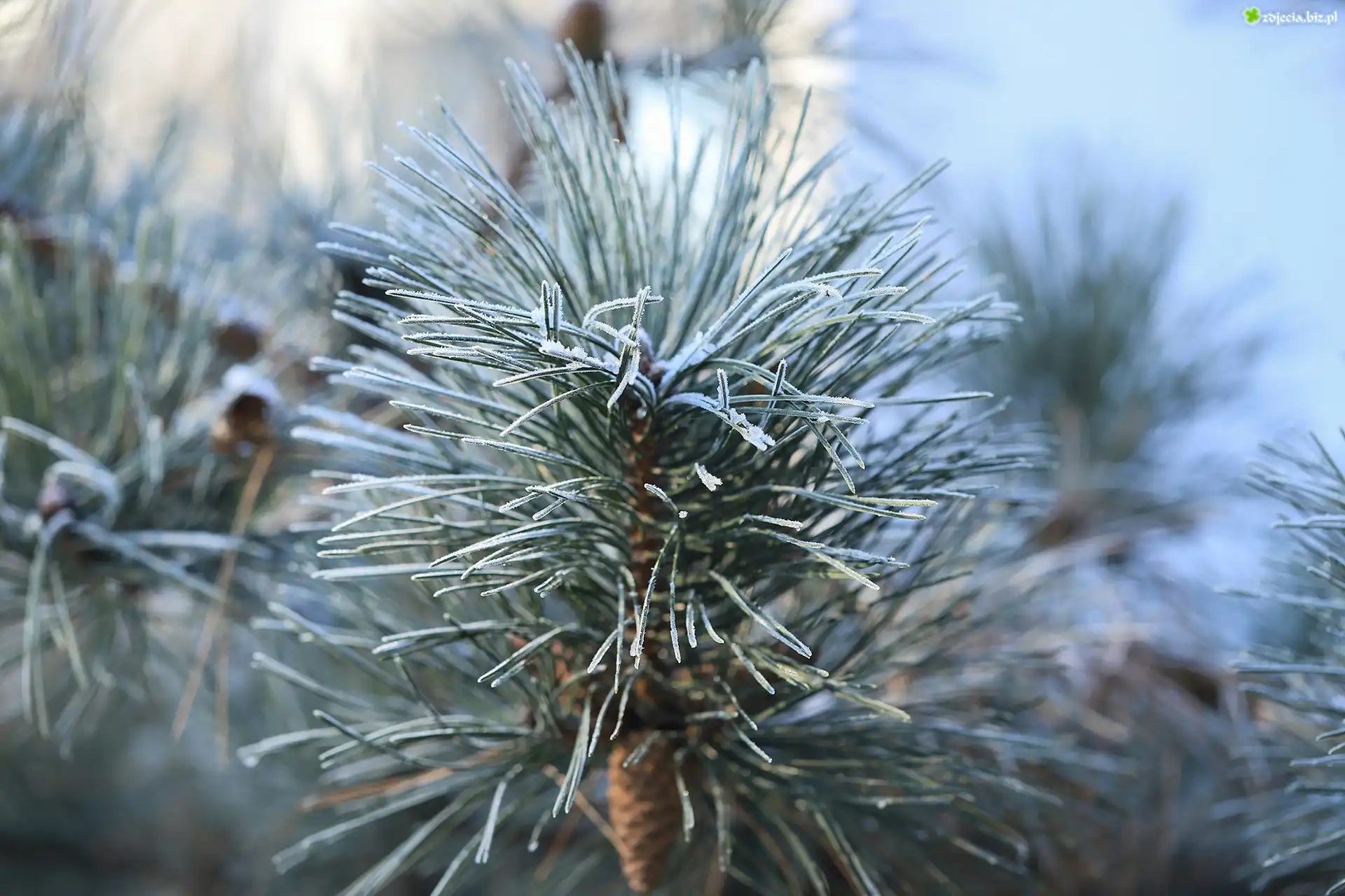 Zdjęcie Zmarznięta, Oszroniona, Gałązka, Sosna