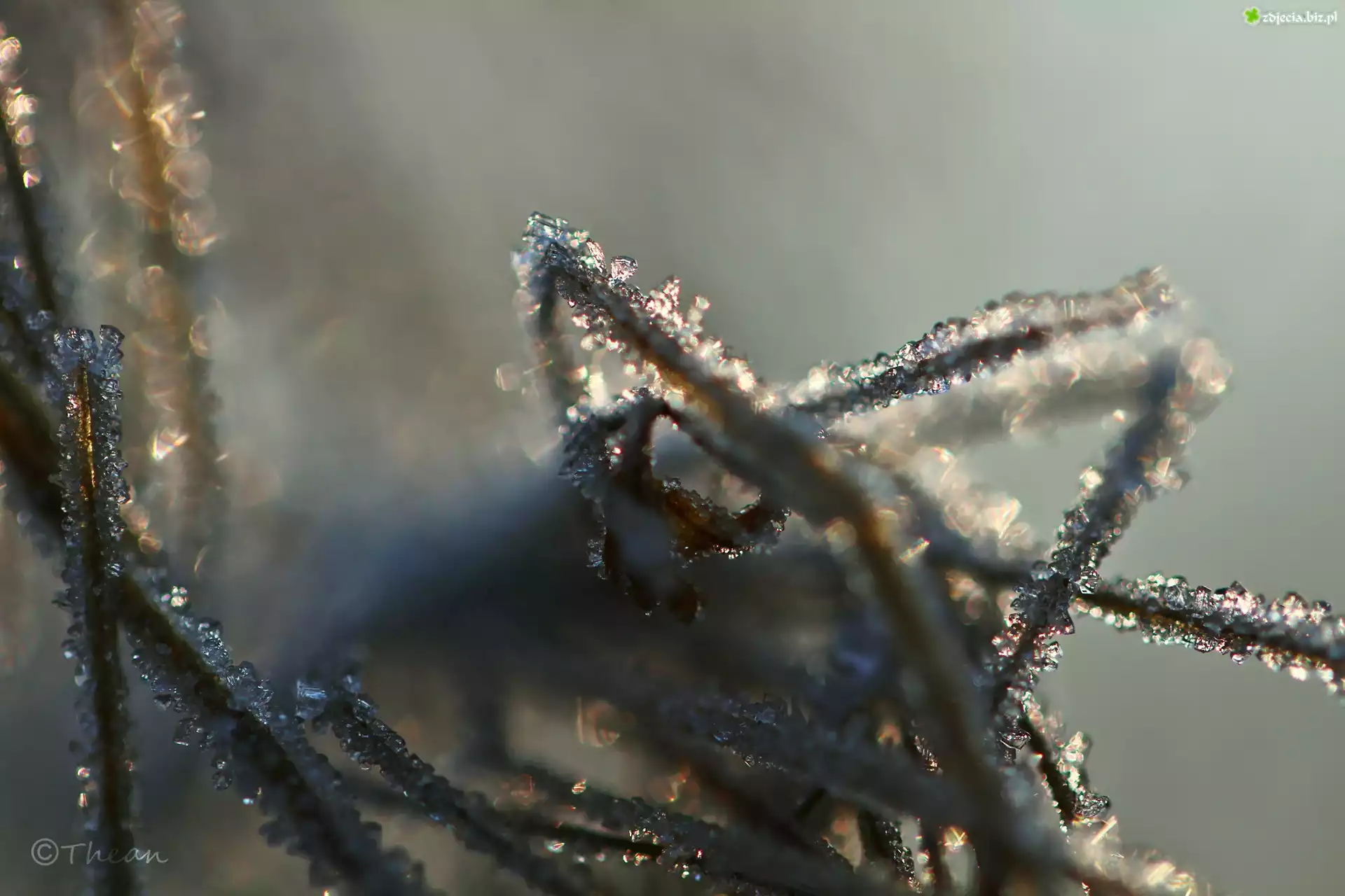 Zdjęcie Zmarznięte, Gałązki, Kryształki, Lodu