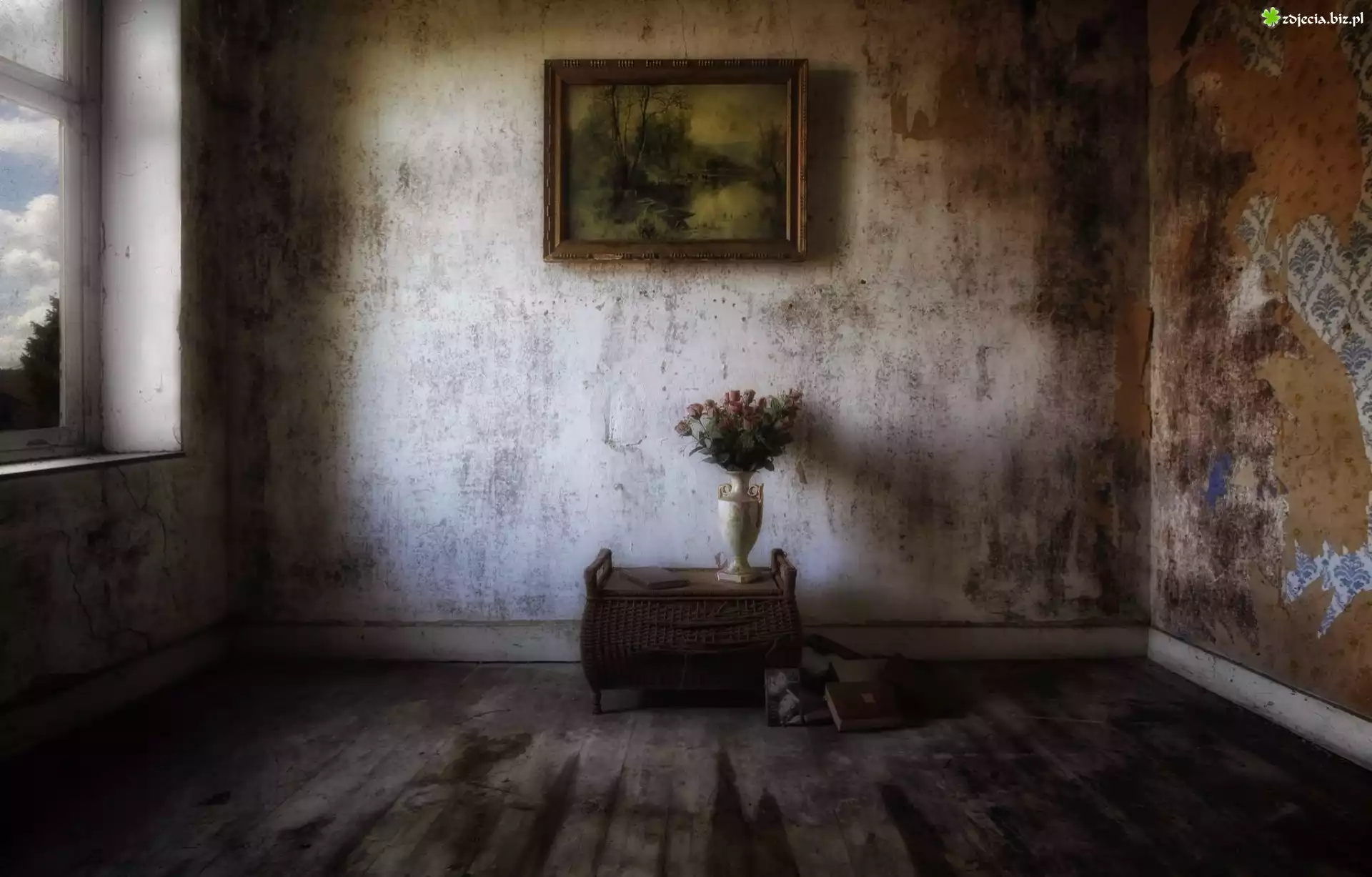 Zdjęcie, Zaniedbany, Zniszczony, Pokój, Obraz, Bukiet