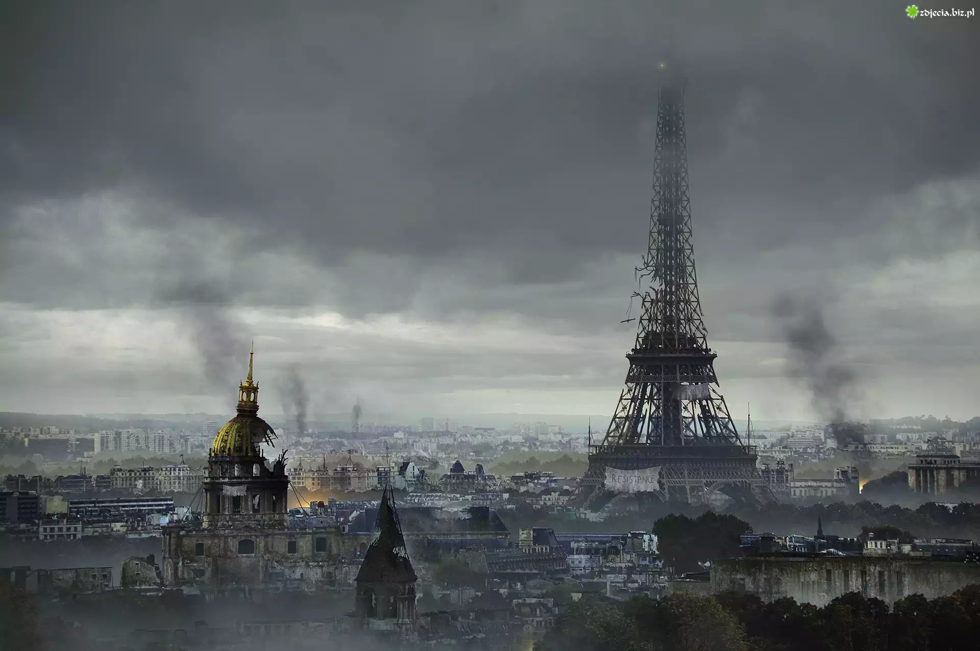 Pałac, Vaux le Vicomte, Maincy, Francja Paryż, Wieża Eiffla, Nocą Kobieta, Zielone, Włosy, Okno Dzieci, Gwiazdy, Marzenia